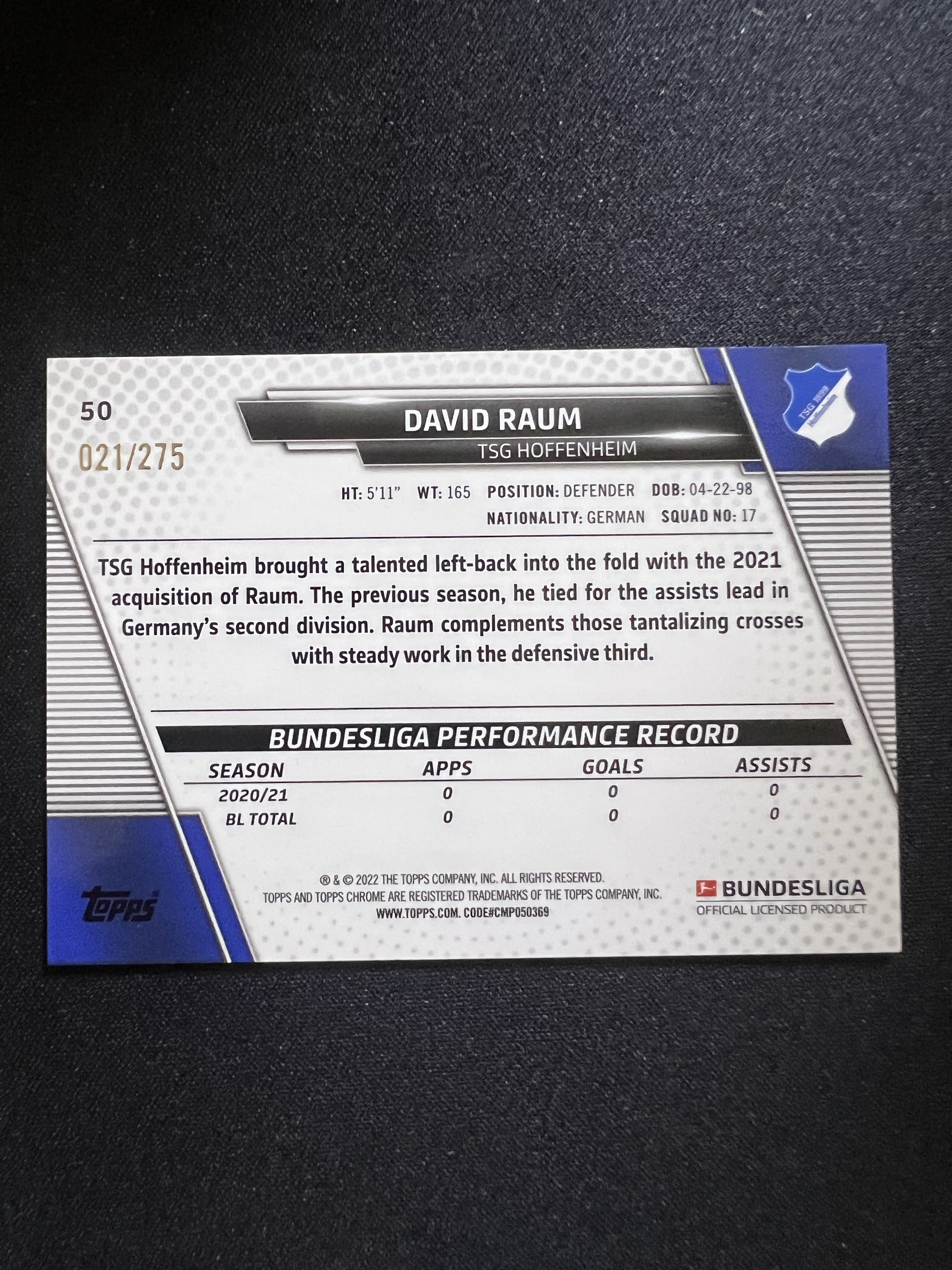 2021-22 Topps Chrome David Raum RC 德甲Chrome 霍芬海姆 大卫 劳姆 新秀 275编 卡片精美 收藏必备 刺客-落枫