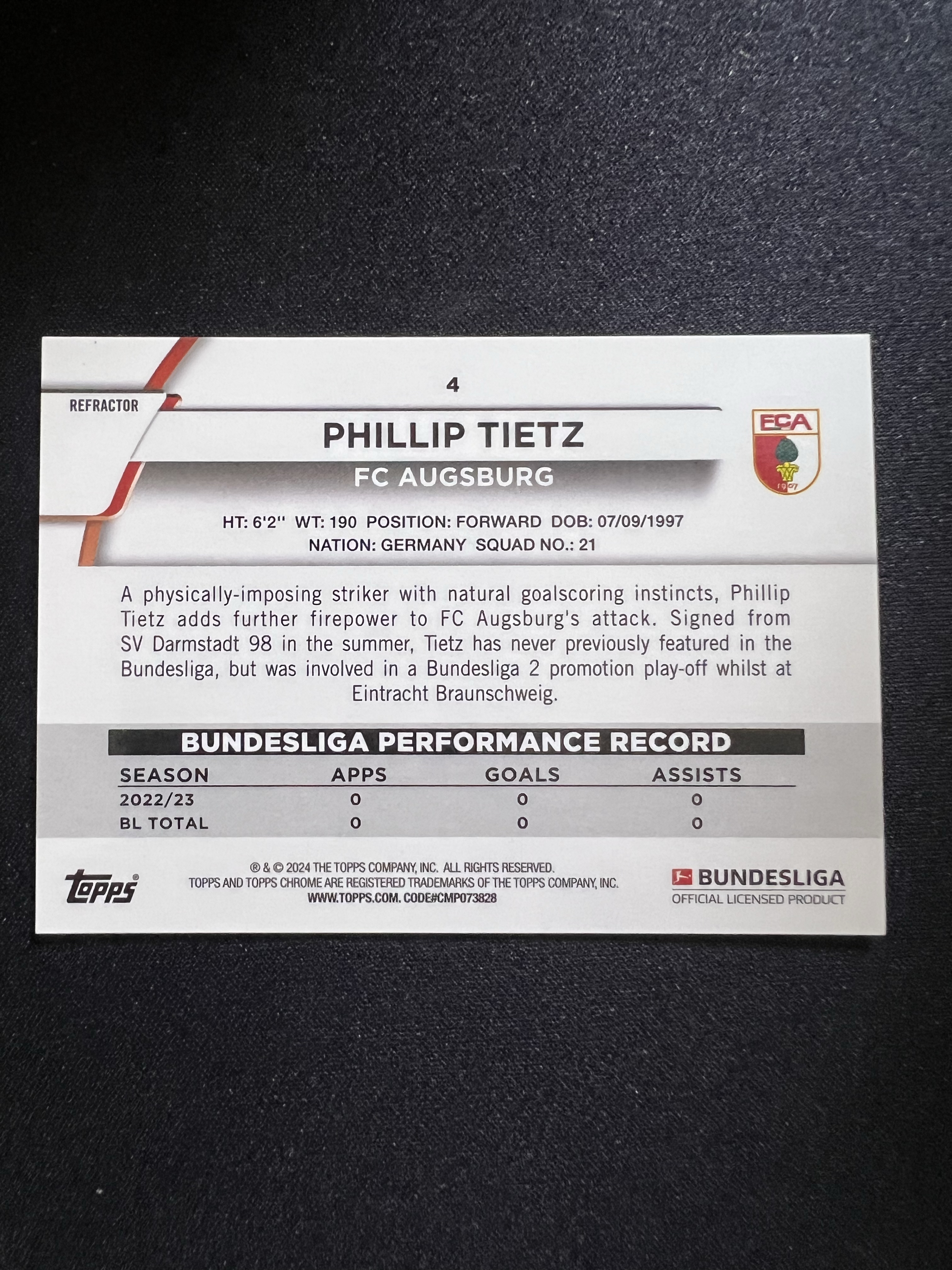 2023-24 Topps Chrome PHILLIP TIETZ 德甲Chrome 奥格斯堡 菲利普 蒂茨 75编 卡片精美 收藏必备 刺客-落枫