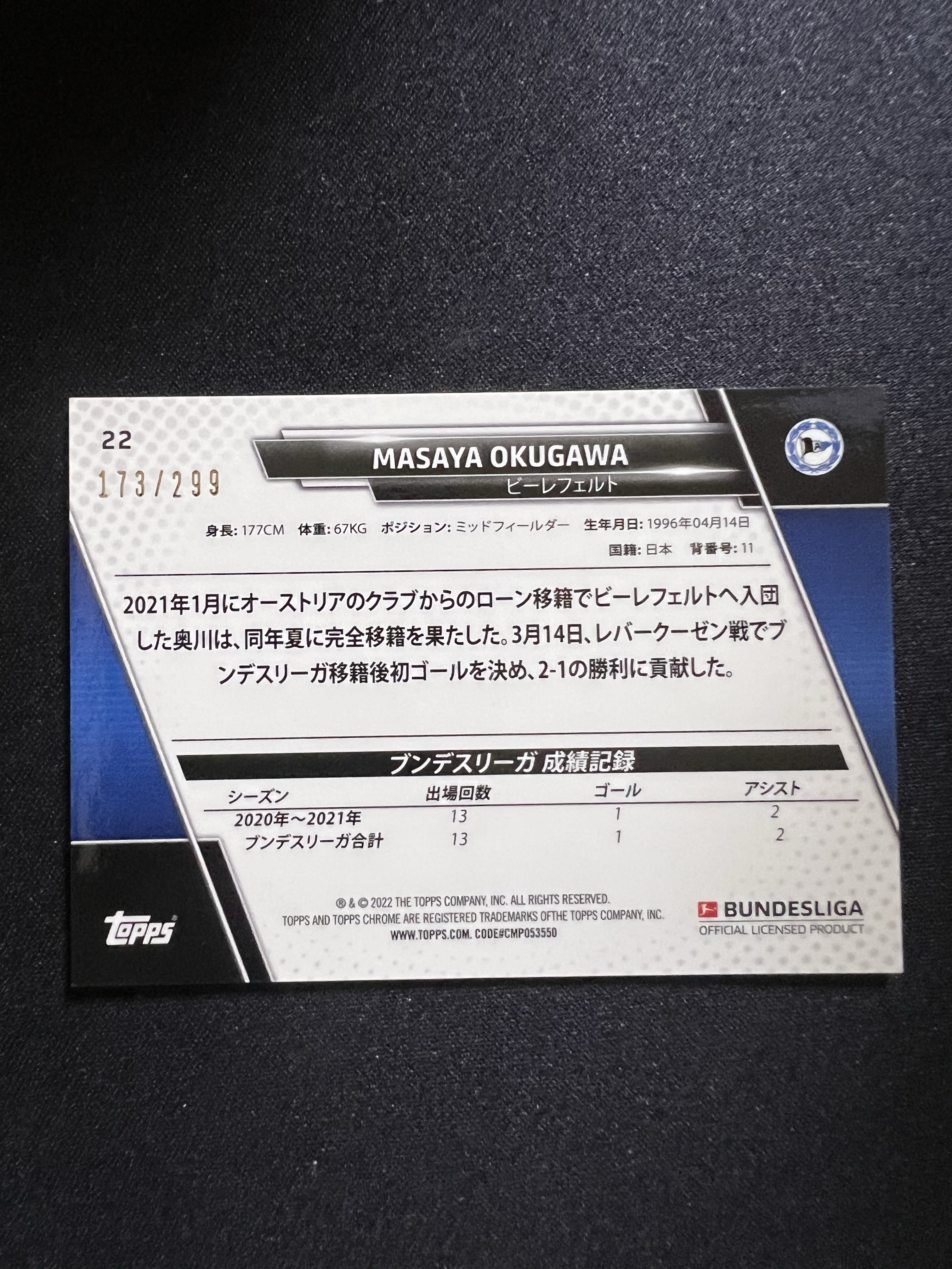 2021-22 Topps Chrome Masaya Okugawa 德甲Chrome 樱花 比勒菲尔德 奥川雅也 299编 卡片精美 收藏必备 刺客-落枫