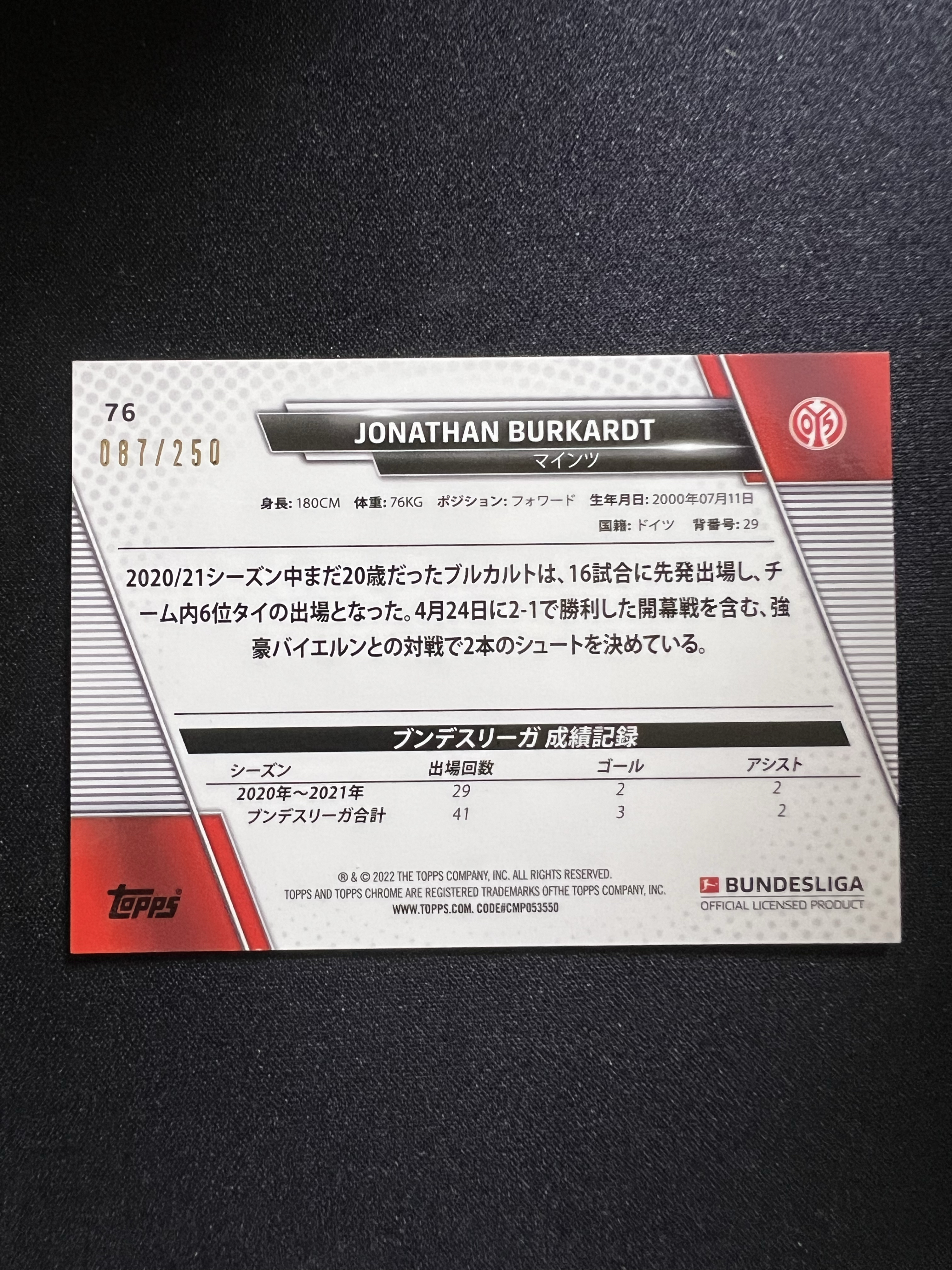 2021-22 Topps Chrome Jonathan Burkardt 德甲Chrome 樱花 美因茨 乔纳森 伯卡特 250编 卡片精美 收藏必备 刺客-落枫