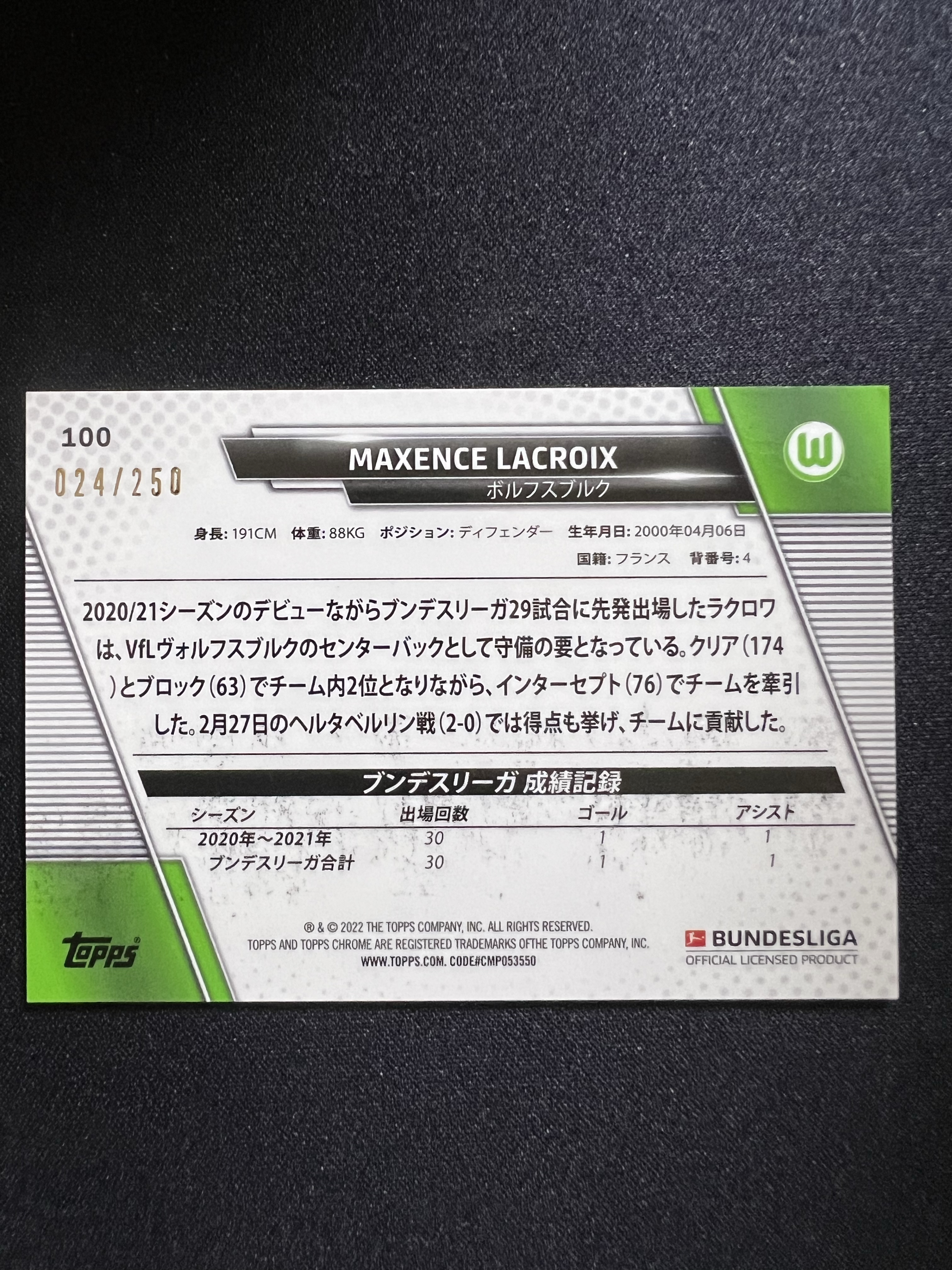 2021-22 Topps Chrome Maxence Lacroix 德甲Chrome 樱花 沃尔夫斯堡 拉克鲁瓦 250编 卡片精美 收藏必备 刺客-落枫