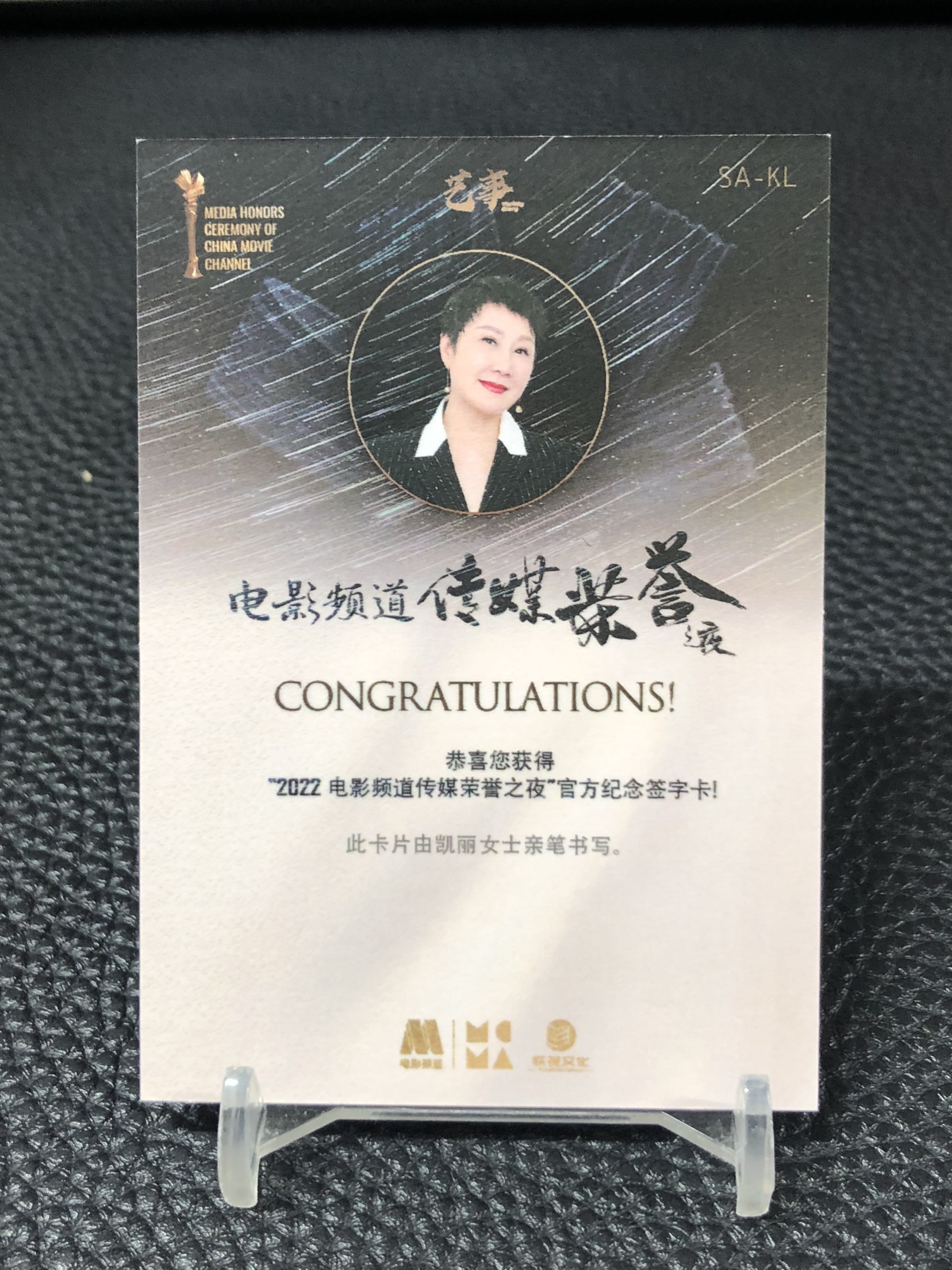 【浩行拍卖 截标预付82%】2022 轶视文化 电影频道 传媒荣誉之夜 荣誉嘉宾 凯丽 签字 卡签 专收必备 瑕疵看图「秋昼」0927J02驡