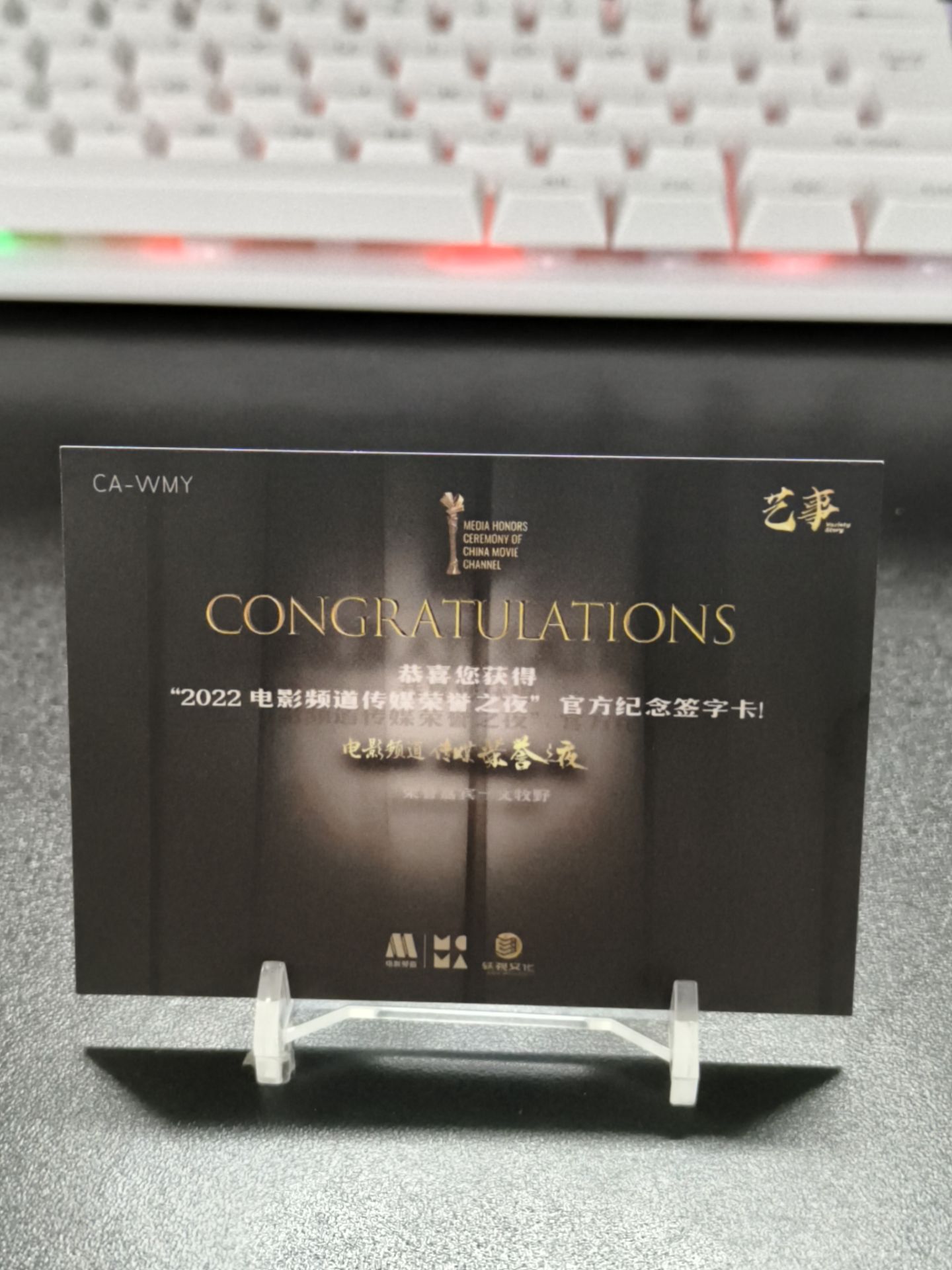 【浩行拍卖 截标预付82%】2022 轶视文化 电影频道 传媒荣誉之夜 荣誉嘉宾 文牧野 签字 卡签 金笔签 瑕疵看图 专收必备「梅菊」0927K01劉