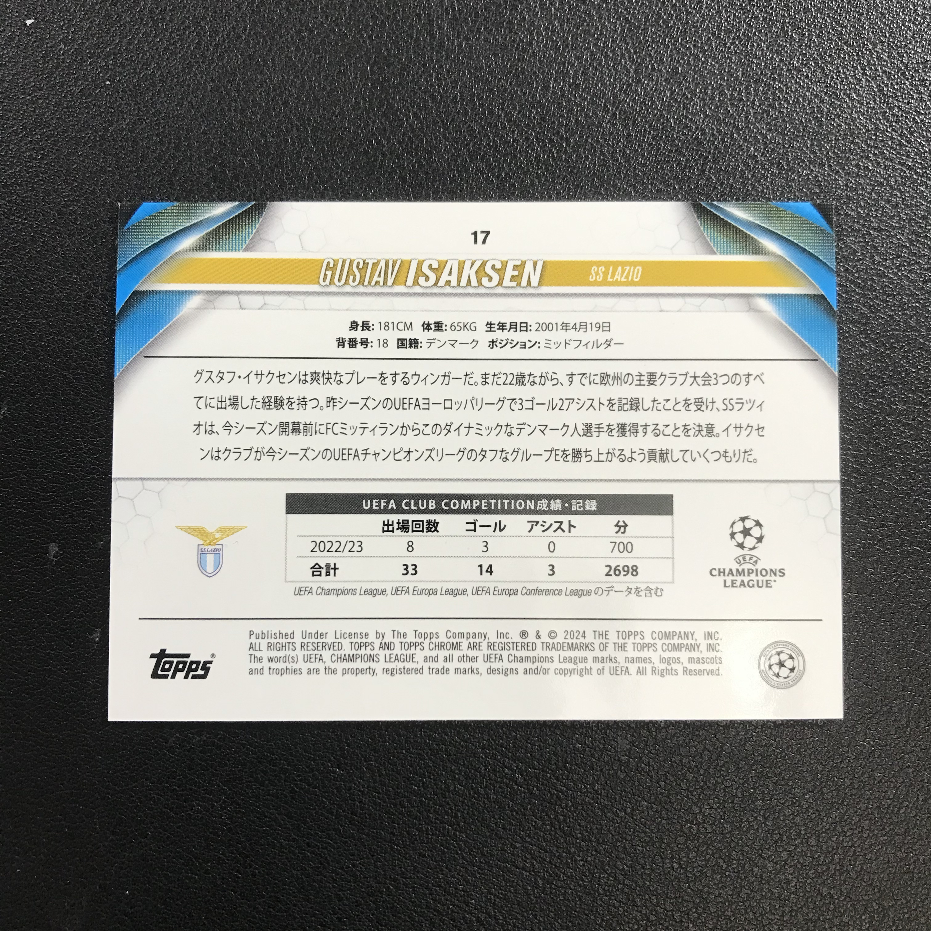 2023-24 Topps Chrome日版樱花盒 Gustav Isaksen 伊萨克森 拉齐奥 欧冠 RC新秀 150编 黄mojo折 多图已拍仔细看图顺丰 极光