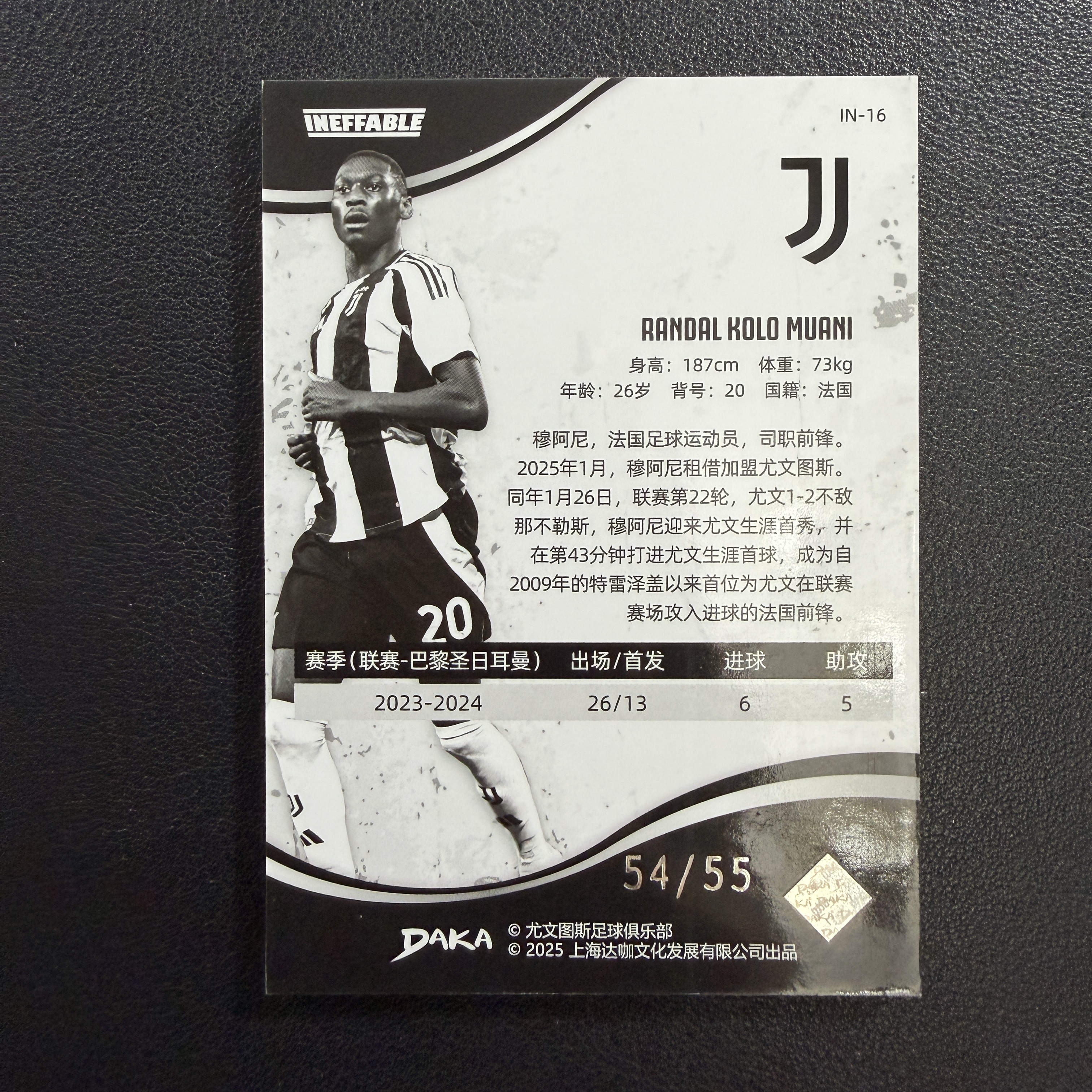 2025 DAKA 尤文图斯 one&two Randal Kolo Muani 穆阿尼 法国 Ineffable 55编 厚卡base 卡品微瑕 极光