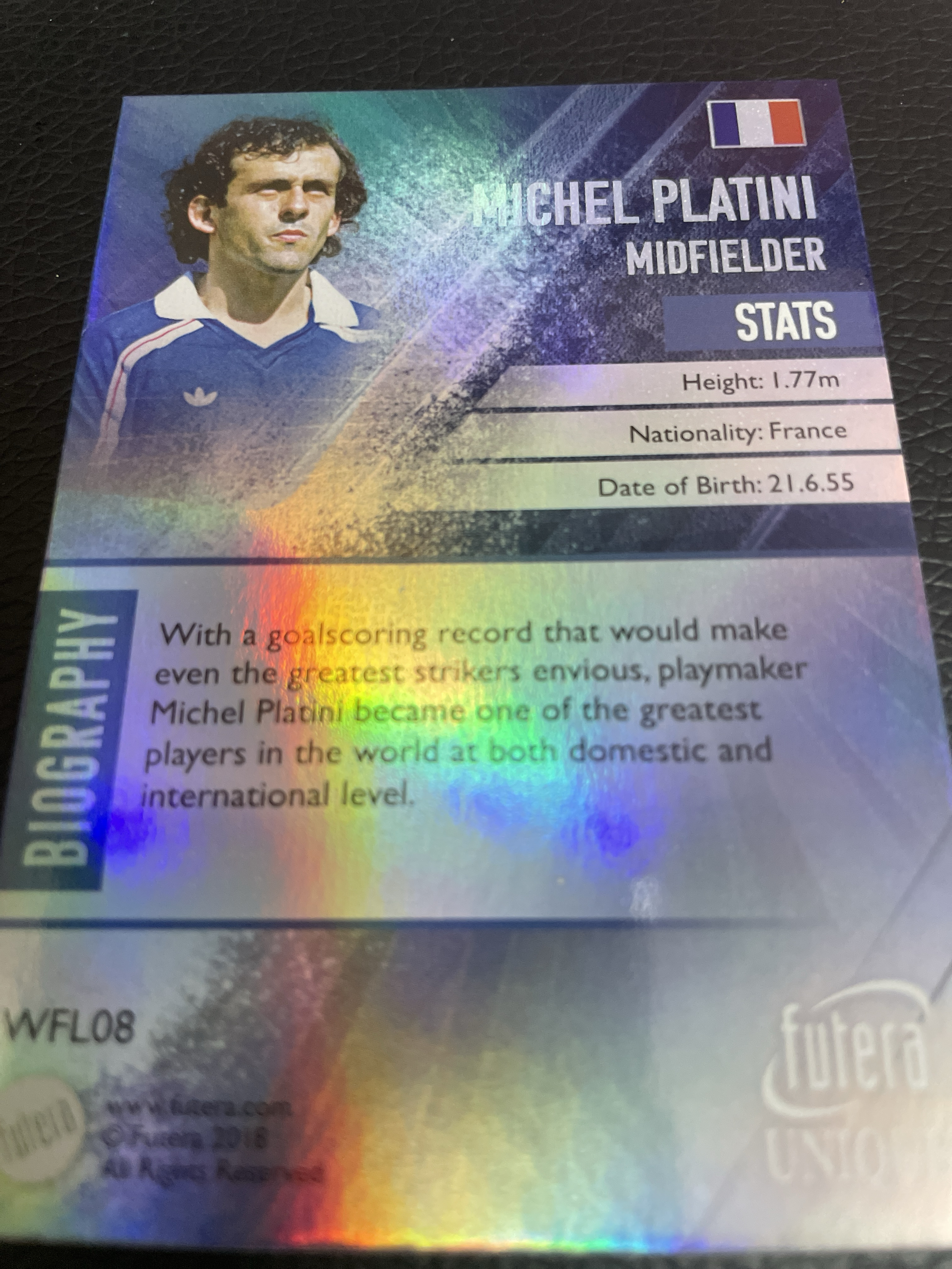 2018 futera unique福特拉 普拉蒂尼 法国国家队 欧足联主席 世界足球传奇 银卡 欧冠 世界杯 卡品如图 老卡会有轻微镶嵌印痕 介意勿拍