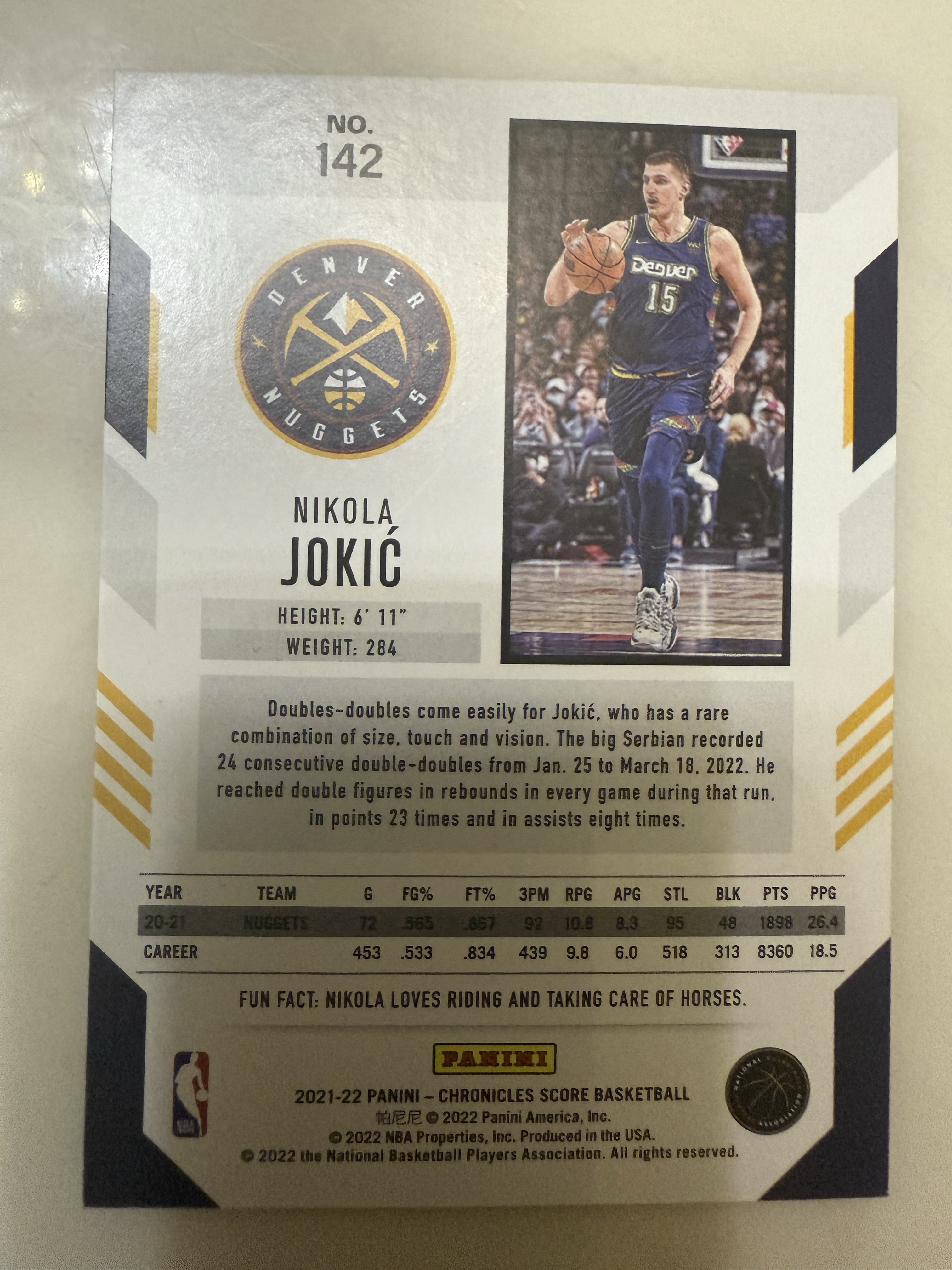 2021-22 Panini Chronicles Nikola Jokic 尼古拉 约基奇 约老师 编年史 卡品如图