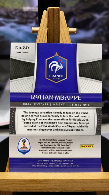 卡品说明:卡品如图为一般通行品,请参拍前仔细查看图片,也可以咨询本店索要卡图,参拍视为接受卡品,拍下后不接受以卡品为理由的任何不进行交易的行为。国宝、IMM 、小真金、Noir等厚的卡普遍会有白边白角、卡面有轻印都属于通行品。Prizm、 Select、 Optic、 IMM等折射、镜面卡片有小划痕、小印记或非人为卡片制作印刷的问题属于正常通行品。要保证评级金标的请直接购买评级卡,请有强迫症、品相控的卡迷请绕道和谨慎出价