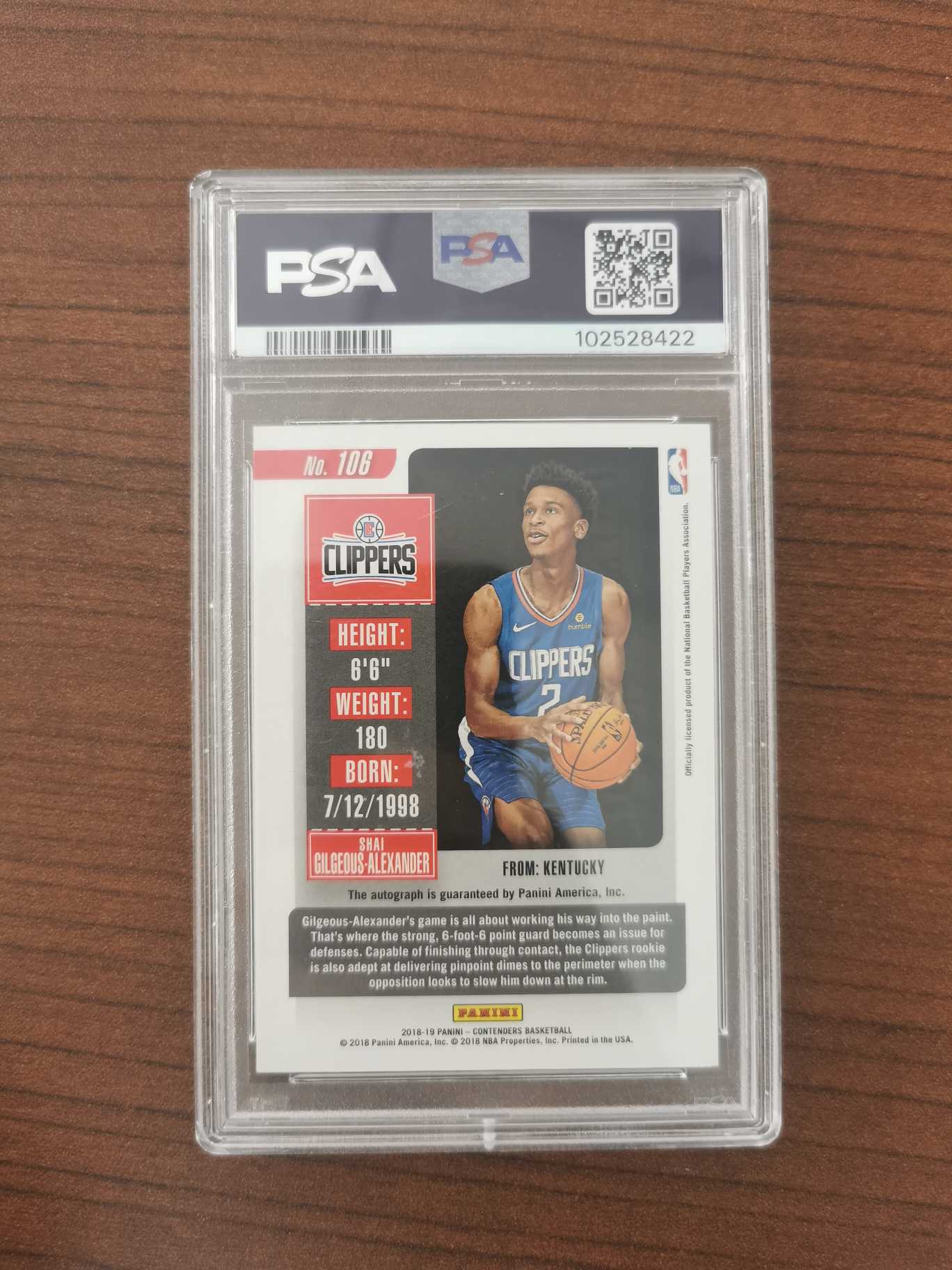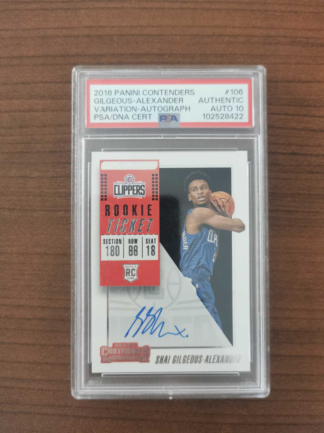 2018-19 Panini Contenders Shai Gilgeous-Alexander RC 亚历山大 SGA 新秀年 球票 卡签 签字 PSA10分 墨迹流畅 雷霆核心 好卡 东契奇