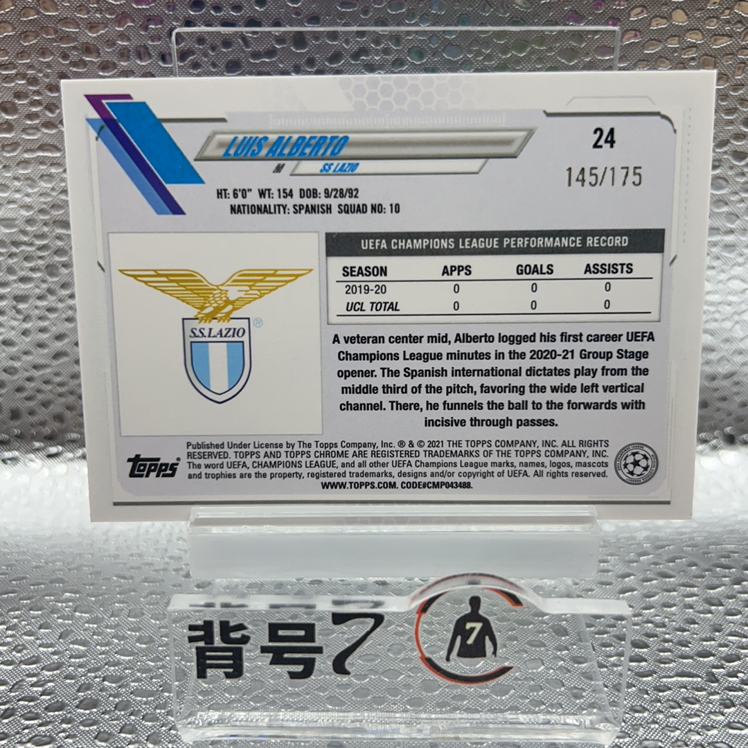 2021 Topps Chrome Luis Alberto 西班牙 拉齐奥 路易斯 阿尔韦托 145/175编 粉碎冰折 卡品如图 收藏必备-L