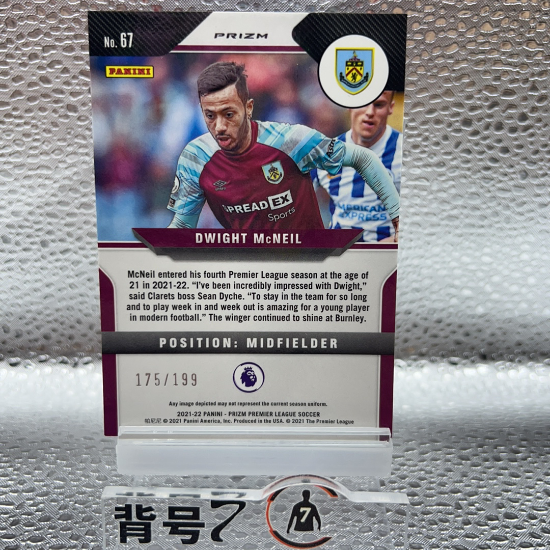 2021-22 Panini Prizm Dwight McNeil 英格兰 伯恩利 德怀特 麦克尼尔 英超 175/199编 红折 卡品如图 收藏必备-na