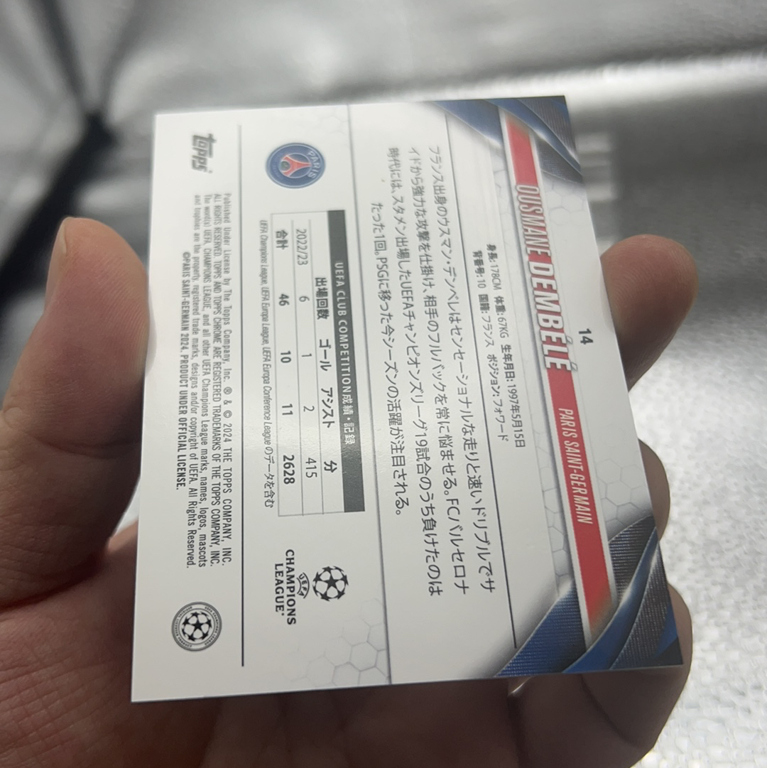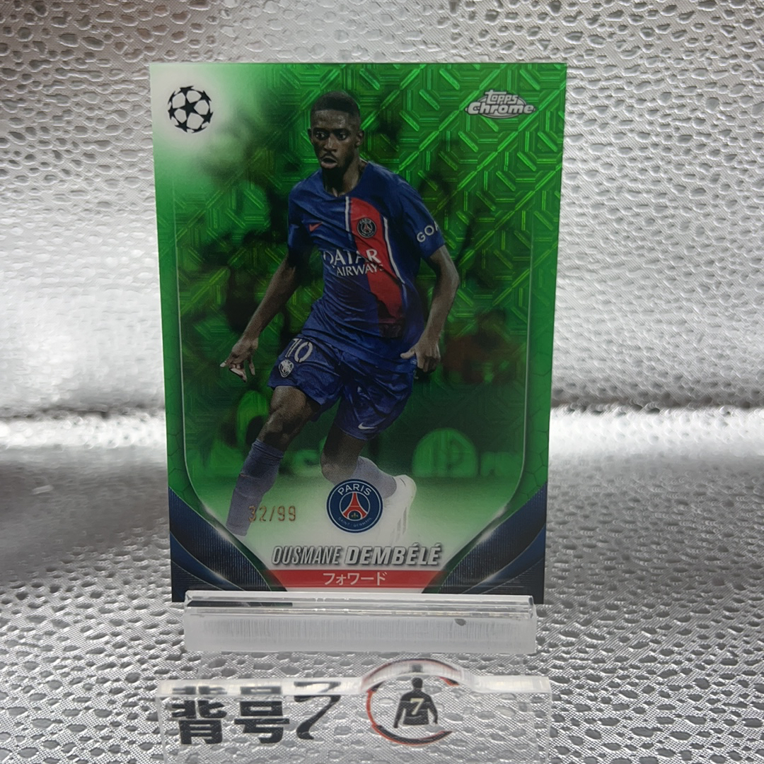 2024 Topps Chrome Ousmane Dembélé 法国 巴黎圣日耳曼 登贝莱 金球奖 日版 32/99编 绿mojo折 卡品如图 收藏必备-xp