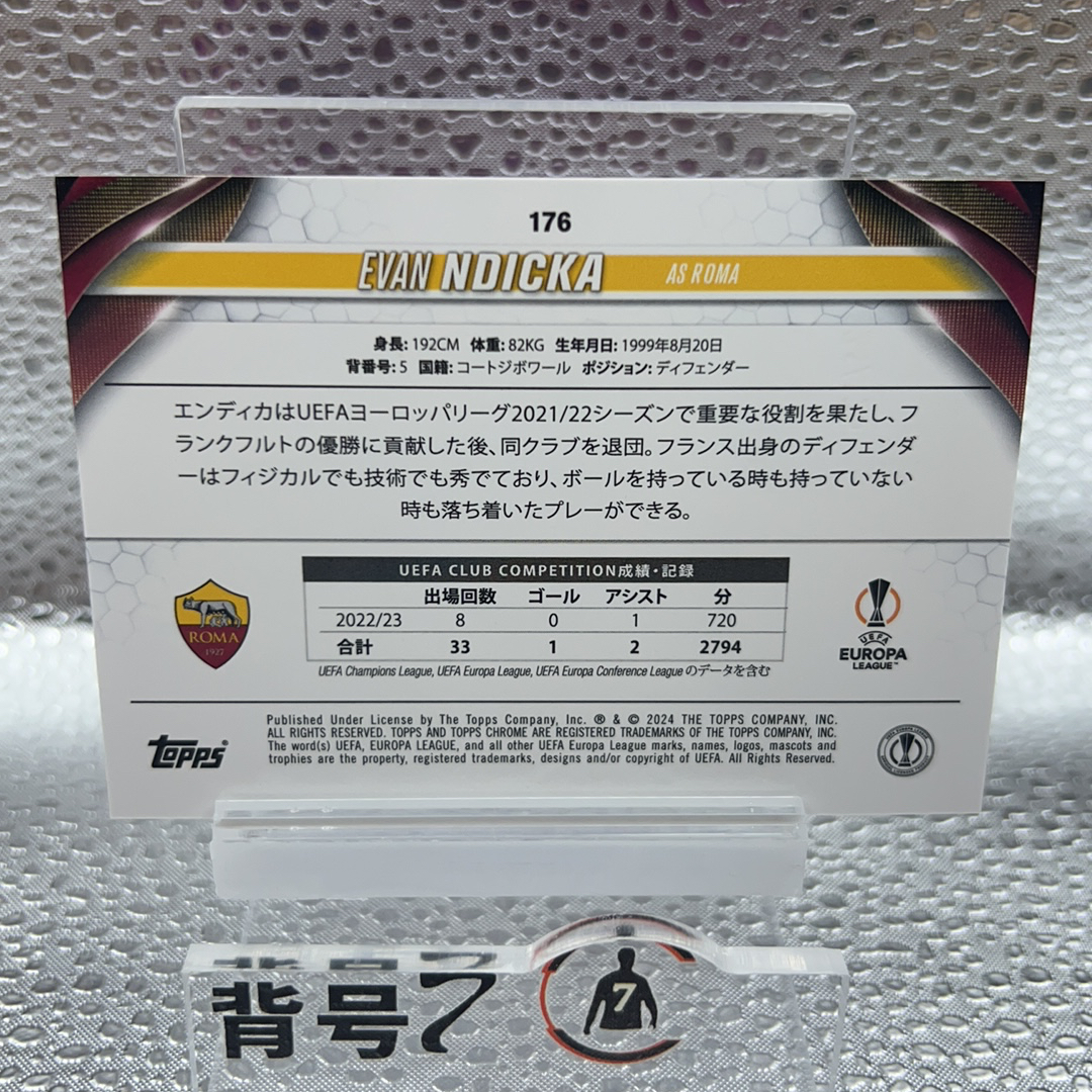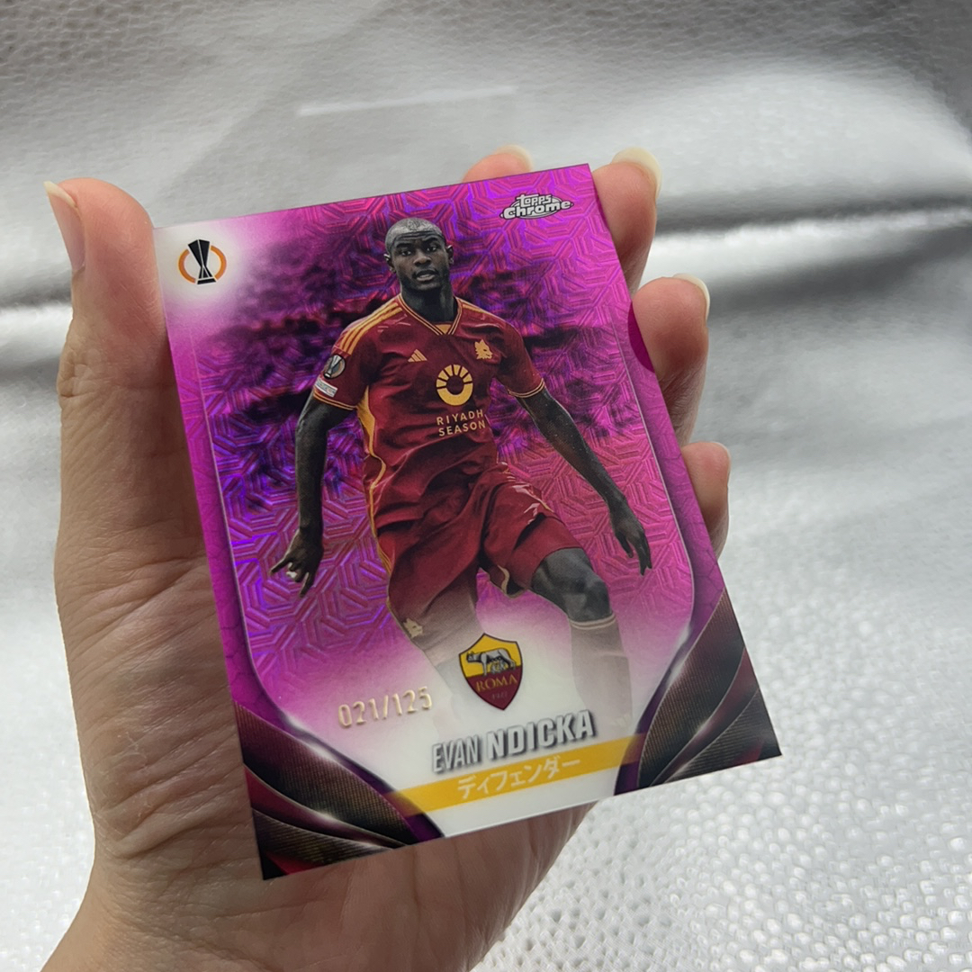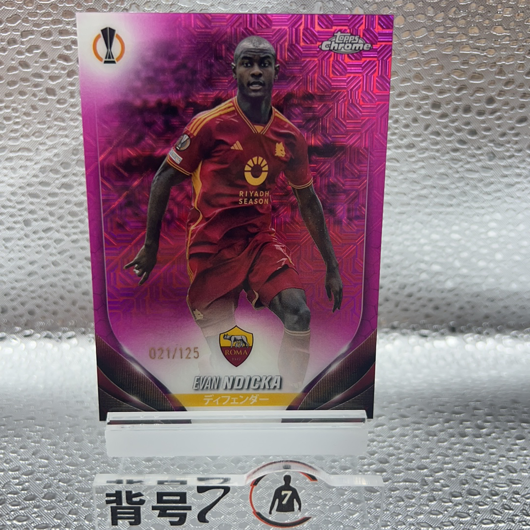 2024 Topps Chrome Evan Ndicka 科特迪瓦 罗马 埃万 恩迪卡 021/125编 粉迷宫折 日版 卡品如图 收藏必备-xp