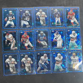 4.卡品如图请看仔细,照片很清楚!请看清楚再拍!折射系列以及马赛克折射系列经常会有一道折射横线 或点状痕 是印刷问题不属于卡品残次范畴,介意者请勿拍。厚卡有轻微白边属于正常现象!如无特殊说明均为通行品。IMM,NOIR, 金书,小真金,国宝,等厚卡系列卡品一般,边角经常有小问题介意勿拍!老卡有白边白角属于正常卡品,镜面卡签字经常有横条竖条印刷划痕属于正常通行品相!评级卡砖上的划痕和破损以及评级砖内的卡有卡品问题一律不属于品相问题