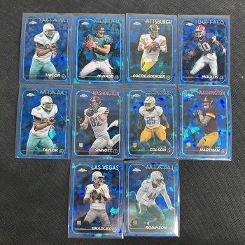 4.卡品如图请看仔细,照片很清楚!请看清楚再拍!折射系列以及马赛克折射系列经常会有一道折射横线 或点状痕 是印刷问题不属于卡品残次范畴,介意者请勿拍。厚卡有轻微白边属于正常现象!如无特殊说明均为通行品。IMM,NOIR, 金书,小真金,国宝,等厚卡系列卡品一般,边角经常有小问题介意勿拍!老卡有白边白角属于正常卡品,镜面卡签字经常有横条竖条印刷划痕属于正常通行品相!评级卡砖上的划痕和破损以及评级砖内的卡有卡品问题一律不属于品相问题
