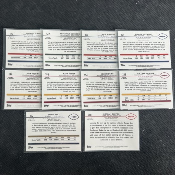 4.卡品如图请看仔细,照片很清楚!请看清楚再拍!折射系列以及马赛克折射系列经常会有一道折射横线 或点状痕 是印刷问题不属于卡品残次范畴,介意者请勿拍。厚卡有轻微白边属于正常现象!如无特殊说明均为通行品。IMM,NOIR, 金书,小真金,国宝,等厚卡系列卡品一般,边角经常有小问题介意勿拍!老卡有白边白角属于正常卡品,镜面卡签字经常有横条竖条印刷划痕属于正常通行品相!评级卡砖上的划痕和破损以及评级砖内的卡有卡品问题一律不属于品相问题