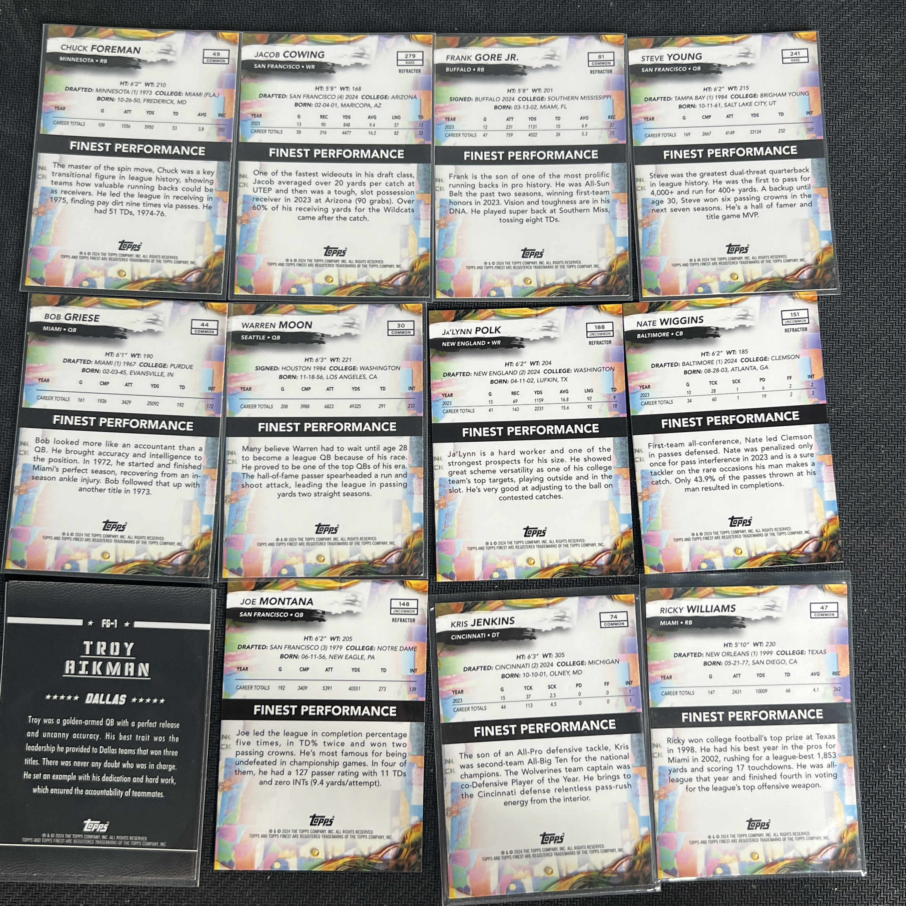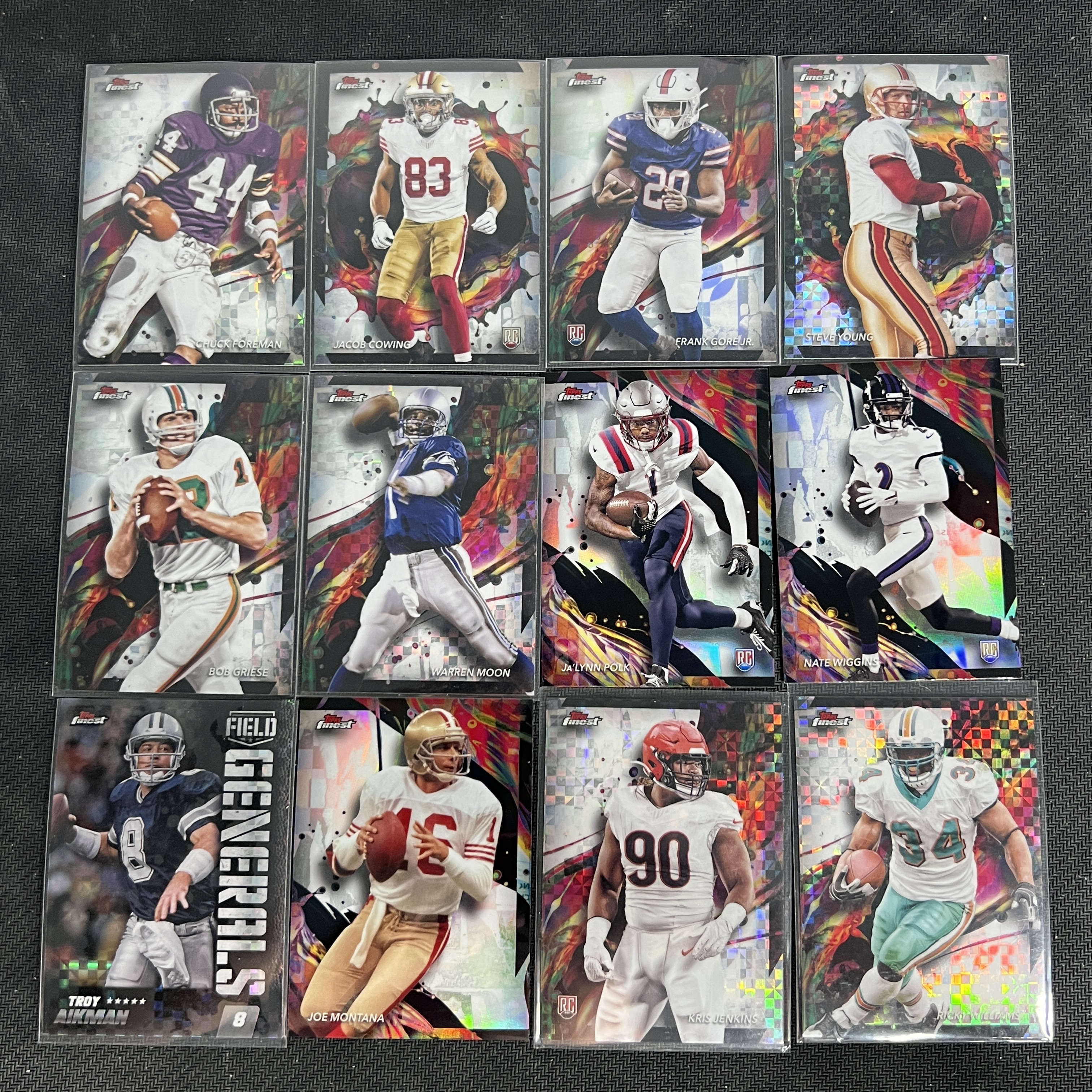 4.卡品如图请看仔细,照片很清楚!请看清楚再拍!折射系列以及马赛克折射系列经常会有一道折射横线 或点状痕 是印刷问题不属于卡品残次范畴,介意者请勿拍。厚卡有轻微白边属于正常现象!如无特殊说明均为通行品。IMM,NOIR, 金书,小真金,国宝,等厚卡系列卡品一般,边角经常有小问题介意勿拍!老卡有白边白角属于正常卡品,镜面卡签字经常有横条竖条印刷划痕属于正常通行品相!评级卡砖上的划痕和破损以及评级砖内的卡有卡品问题一律不属于品相问题