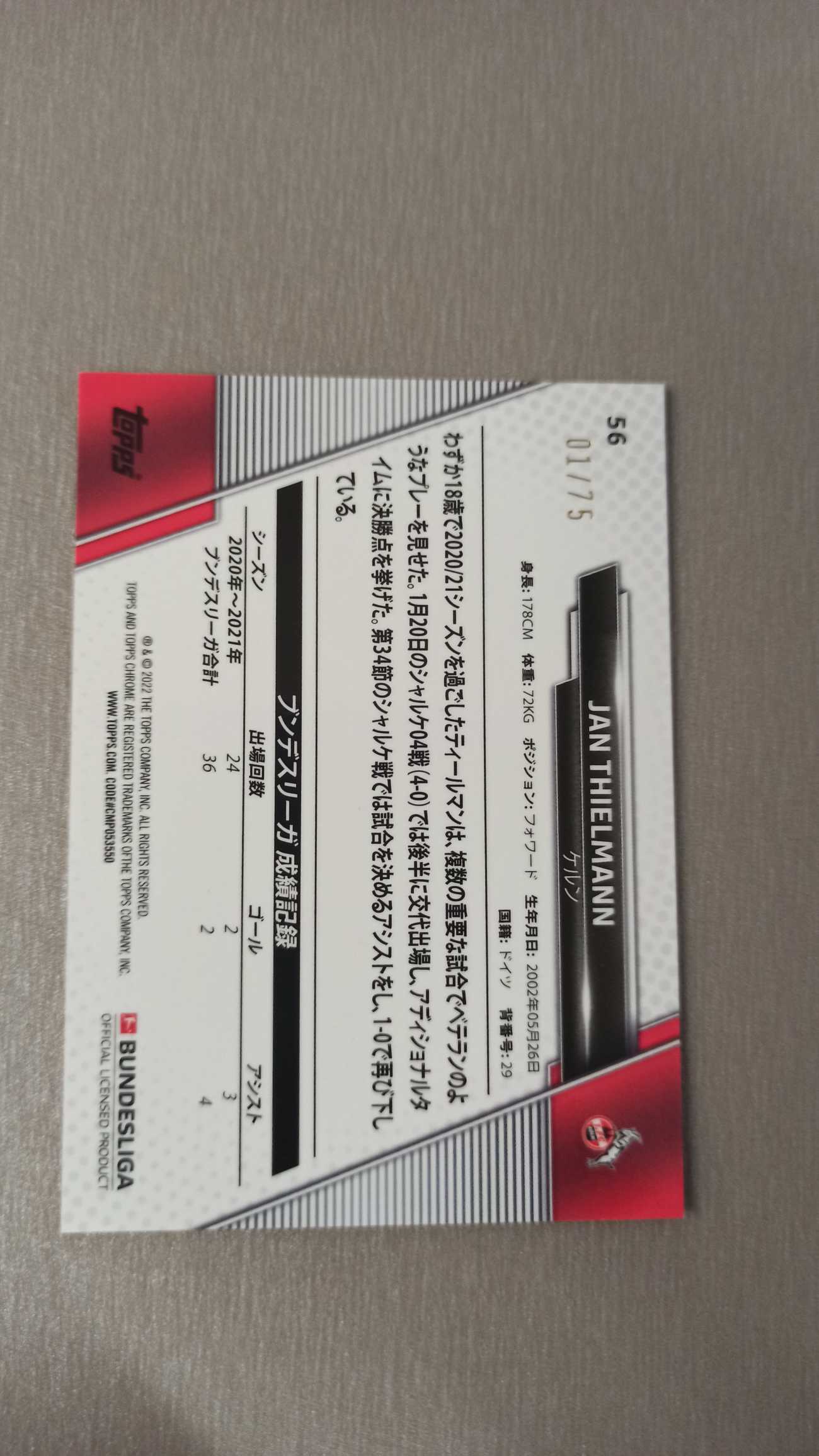 2022 Topps Chrome Bundesliga Japan Jan Thielmann 首编 01/75编 蒂尔曼 卡品如图 收藏必备 卡默认都有瑕疵白边 介意勿拍
