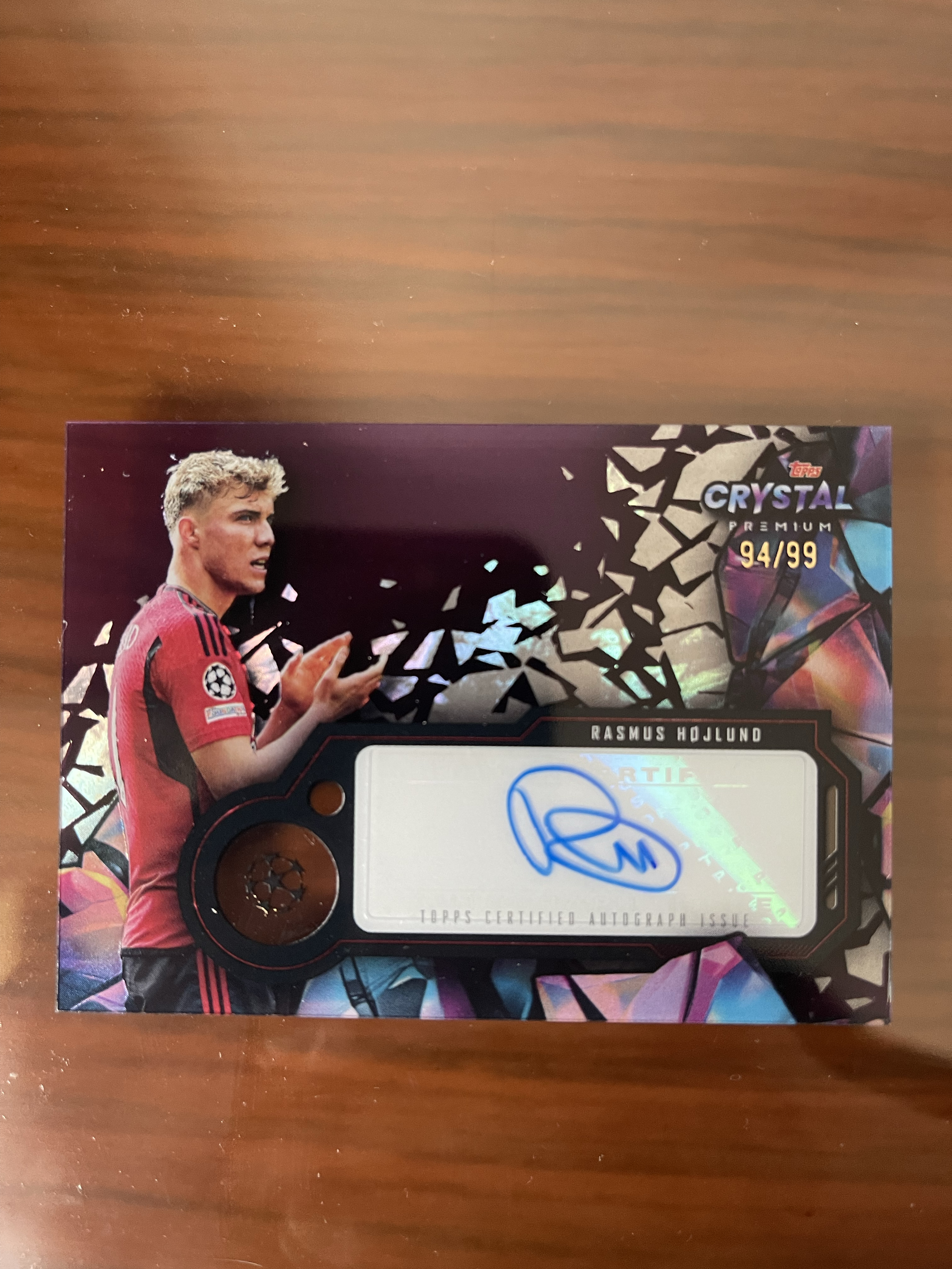 2022-23 Topps crystal rasmus hojlund 欧冠 水晶 曼联 拉斯穆斯 霍伊伦德 签字 94/99编 折射 收藏必备 卡品如图