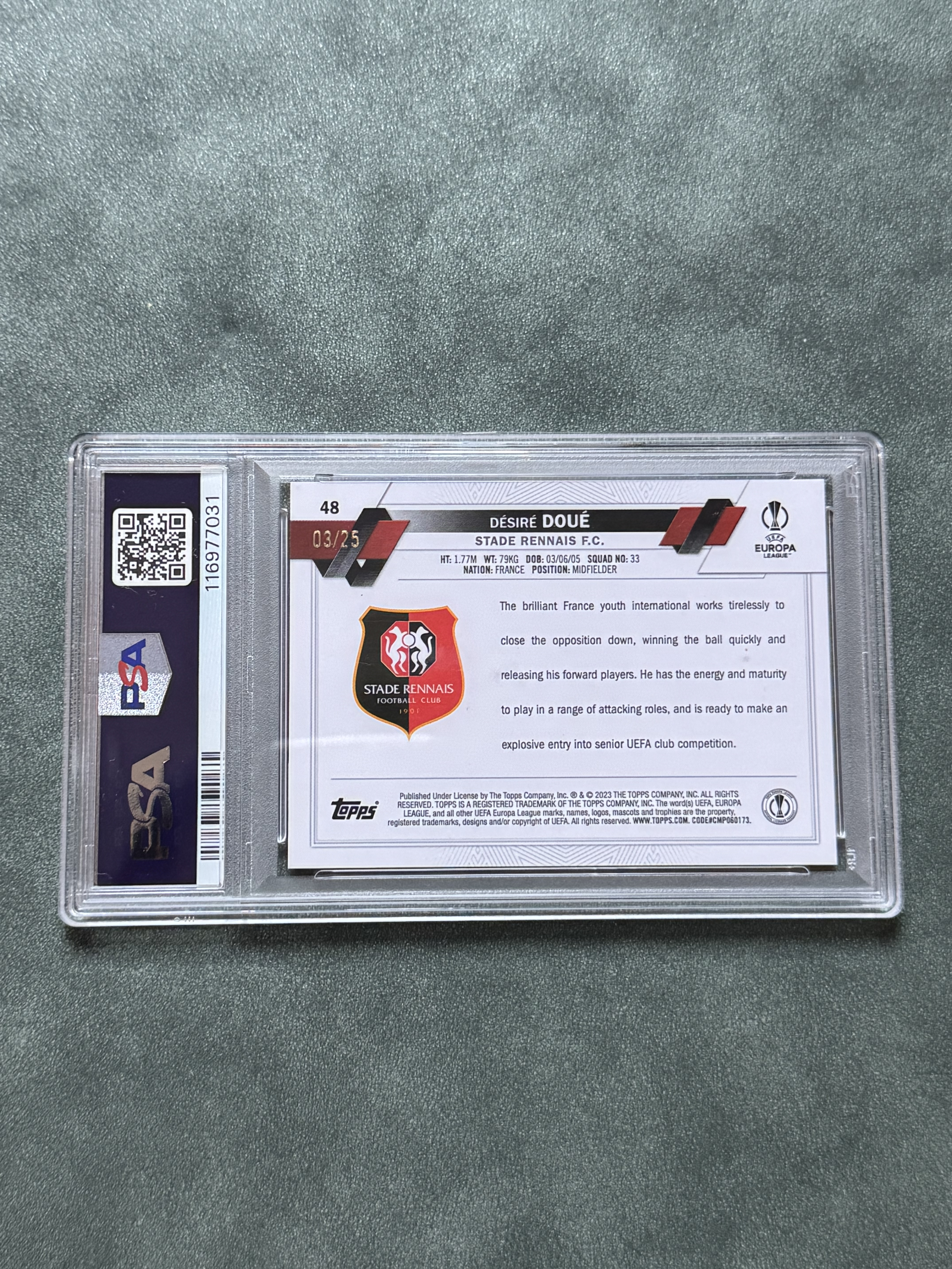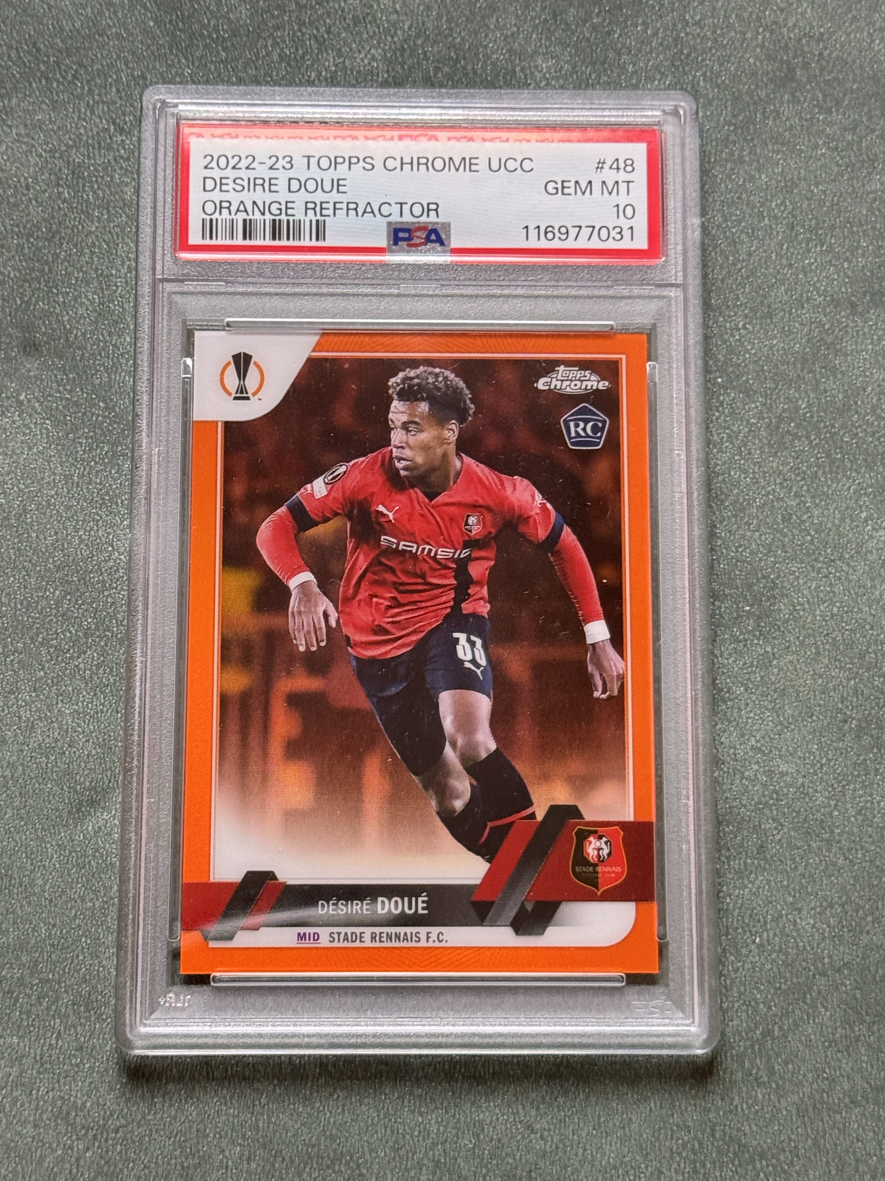 2022-23 Topps Chrome Désiré Doué RC 欧冠Chrome 雷恩 杜埃 RC新秀 03/25编 橙折PSA评级10分 欧冠决赛 MVP 法国 巴黎 登贝莱 姆巴佩