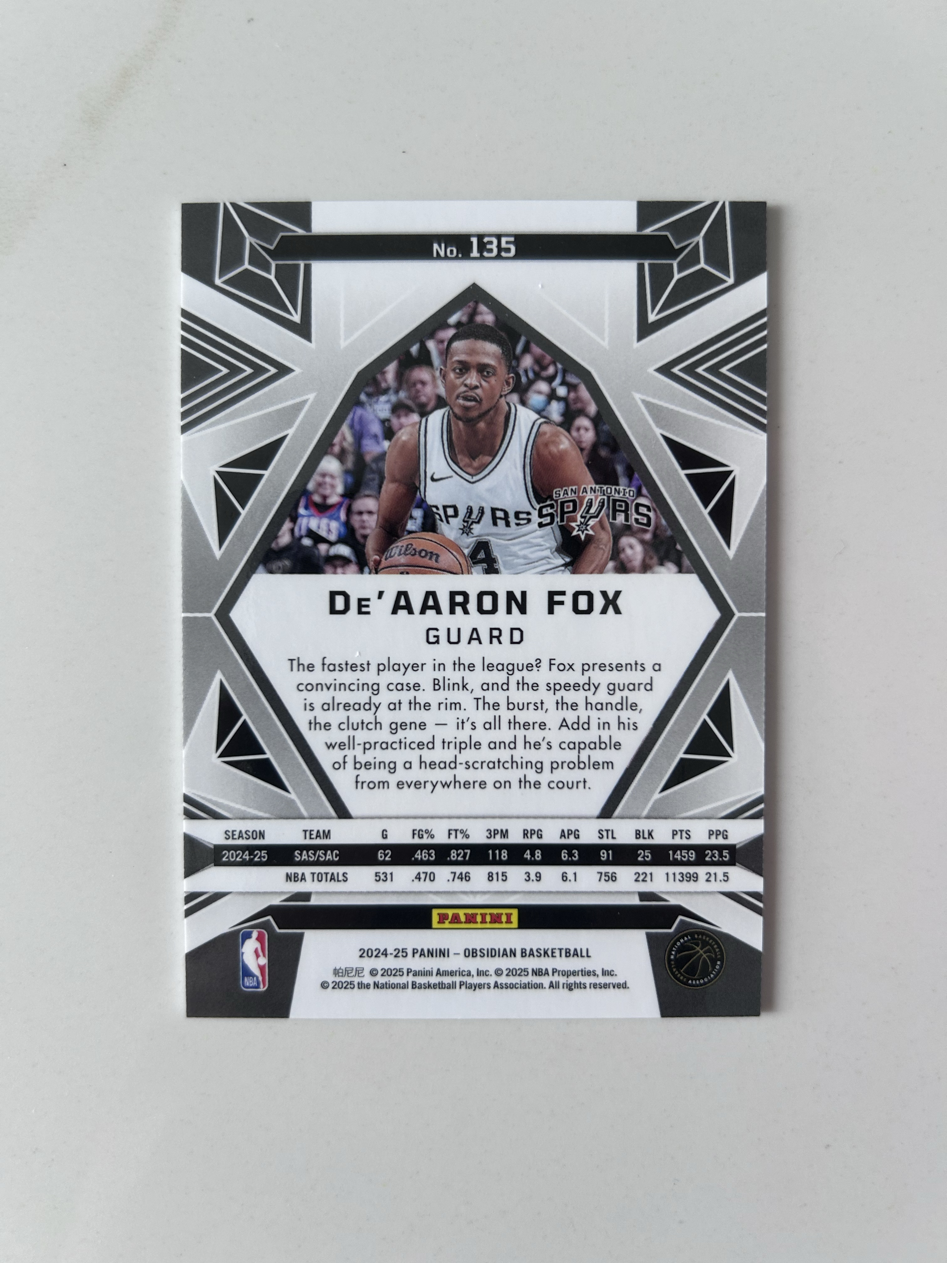 2024-25 Panini Obsidian De'Aaron Fox 篮球黑曜石 马刺队 小狐狸 达龙·福克斯 实卡精美 卡品如图 手慢无