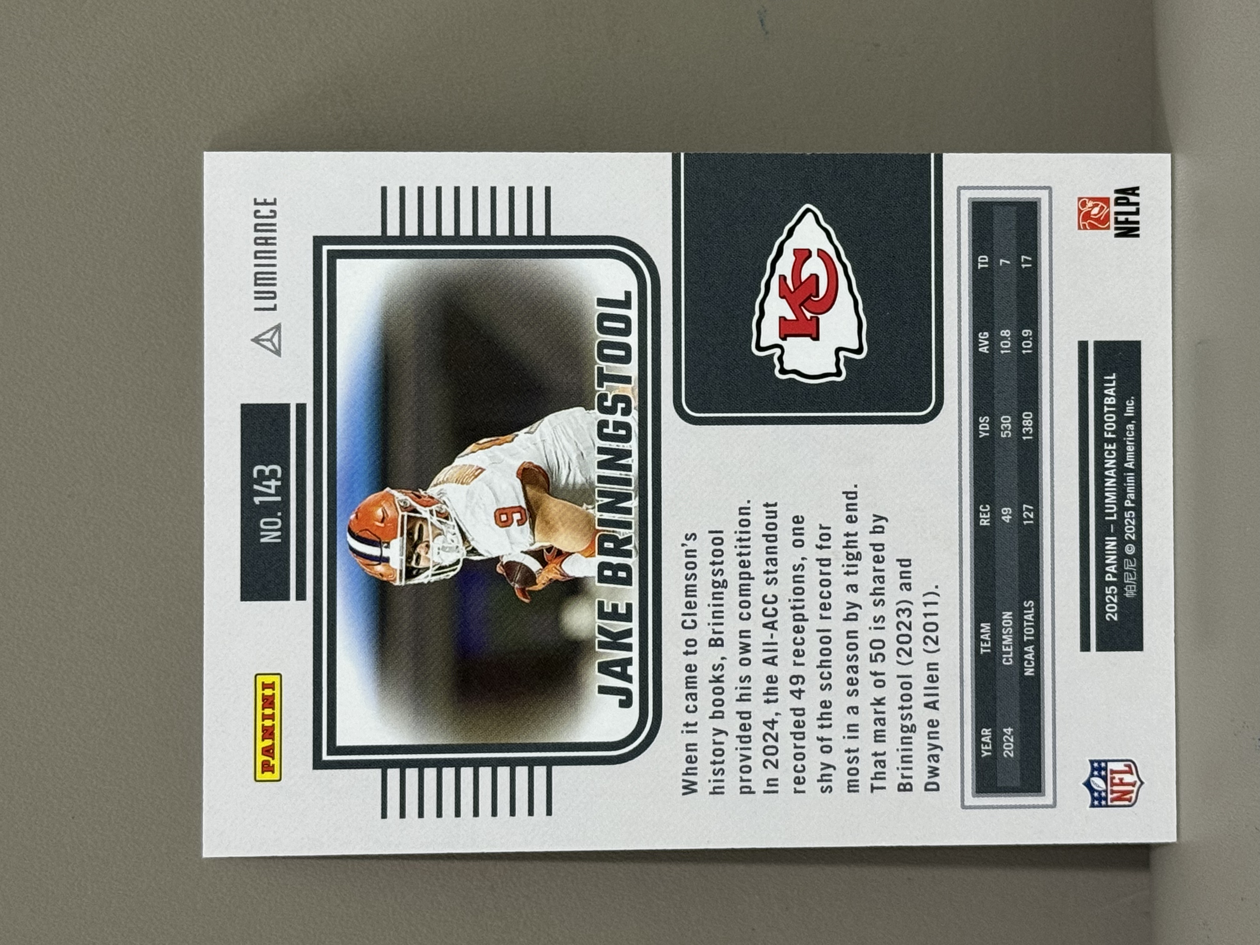 2025 panini luminance 橄榄球NFL 小聚光灯 Jake Briningstool 杰克 布林宁斯图尔 酋长 新秀 RC 249编 折射 紫折 卡品如图 YY