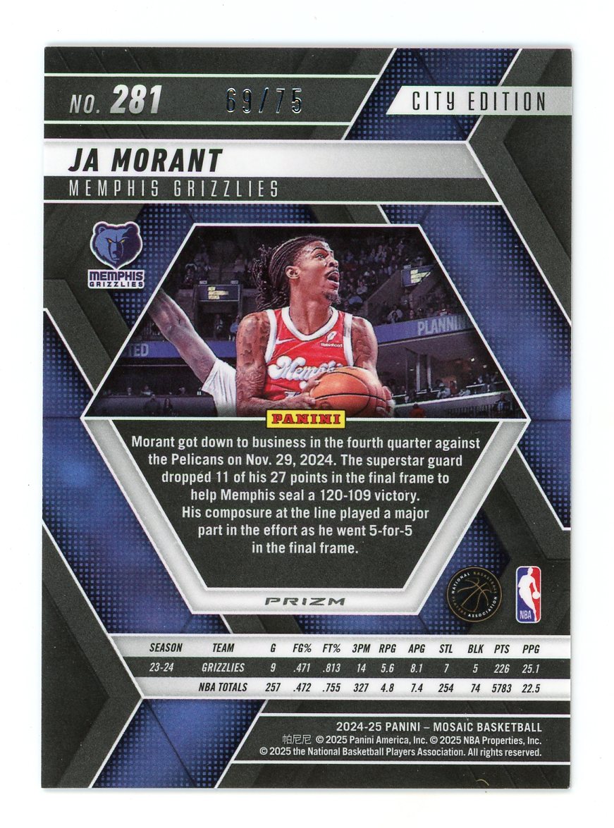 2024-25 Panini Mosaic Basketball Ja Morant Base City Edition International Red Prizm #'ed 69/75