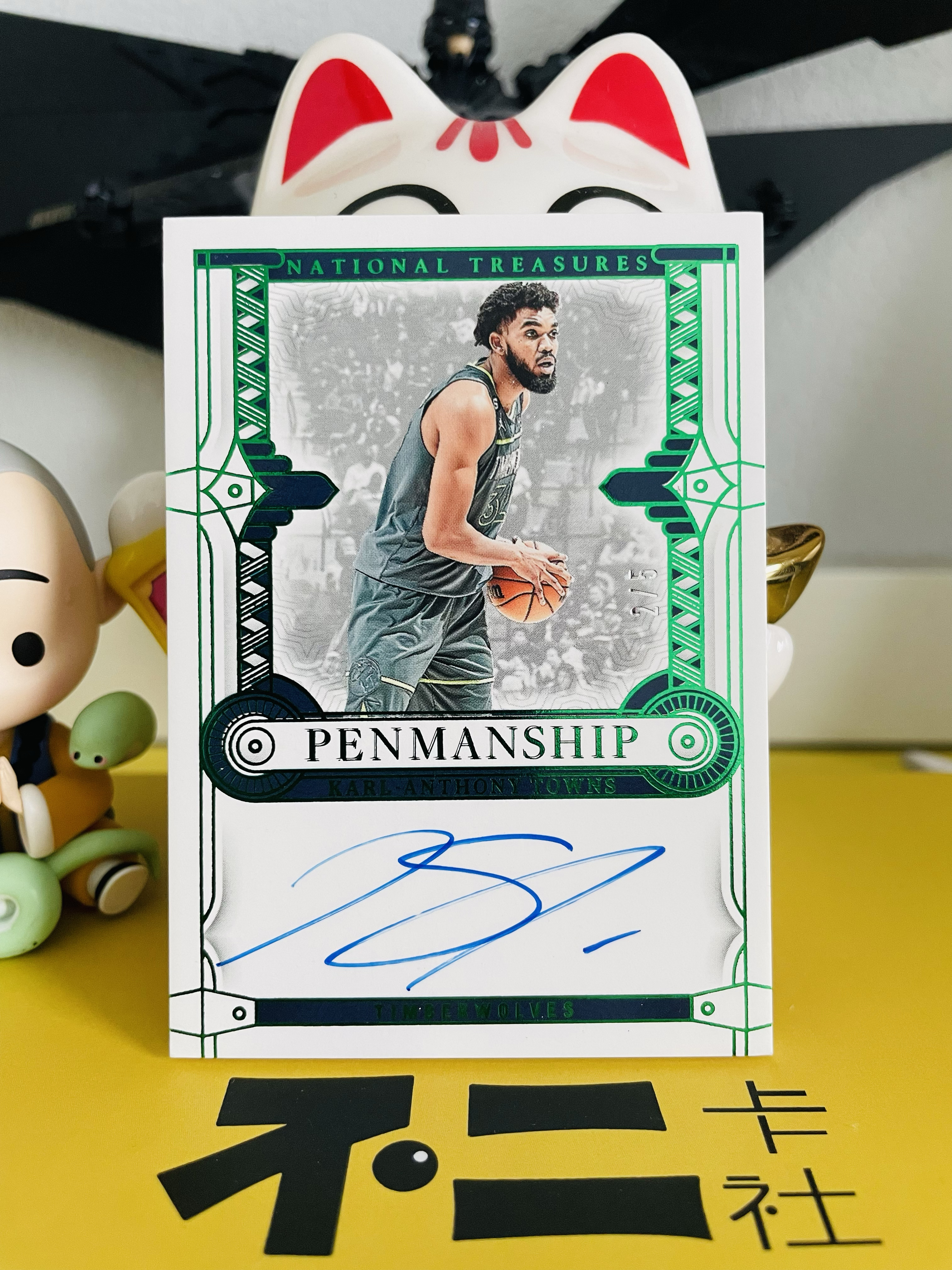 2023-24 NATIONAL TREASURE 国宝系列 KARL-ANTHONY TOWNS 卡尔 安东尼 唐斯 5编 超低编 绿平行 卡签 签字 森林狼队 瑕疵如图 收藏