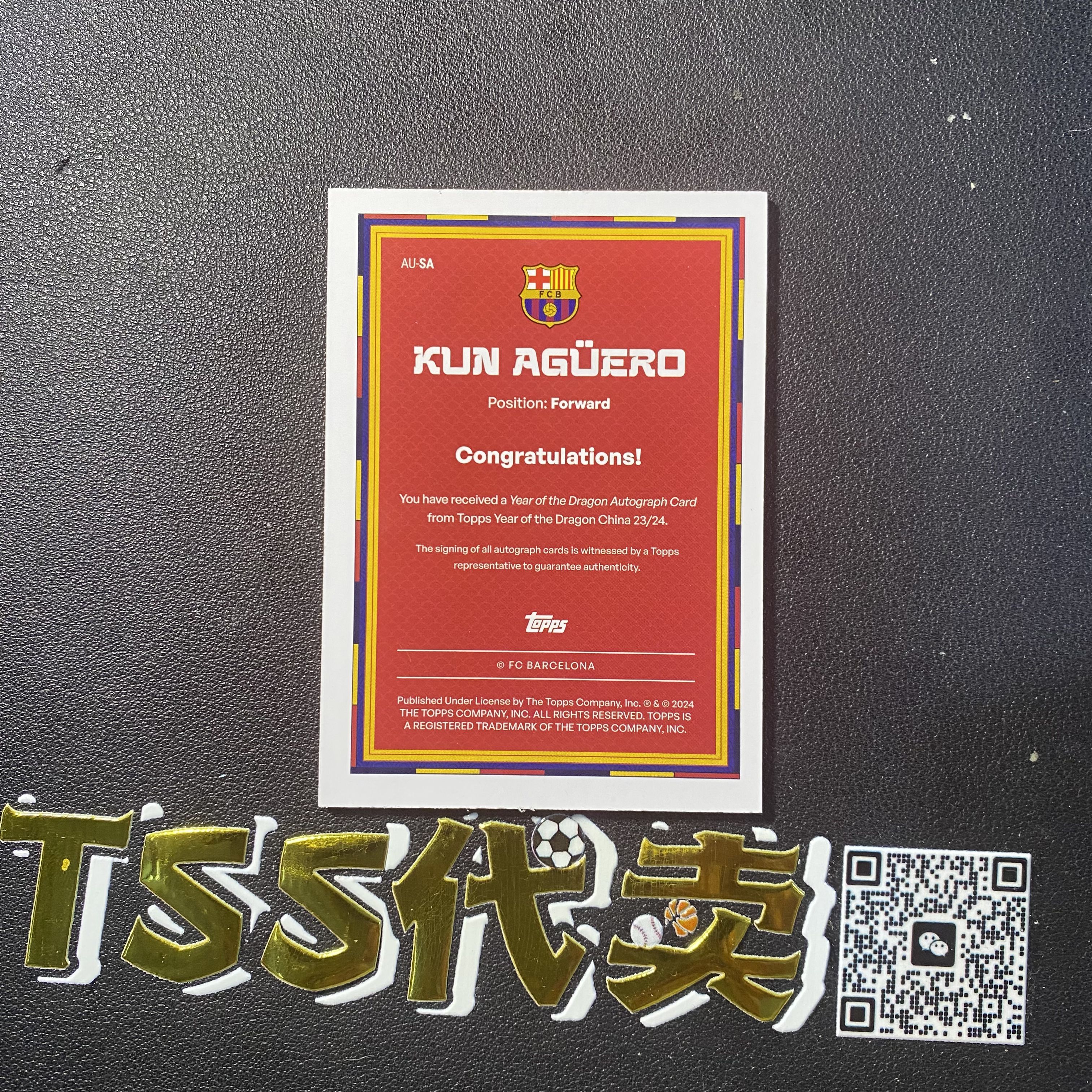 2023-24 Topps 巴萨 队盒 Sergio Aguero 巴塞罗那 阿根廷 阿圭罗 阿奎罗 15/15编 签字 木龙折  约1/1 传奇前锋  曼城 JH4320  ZGK88-陳