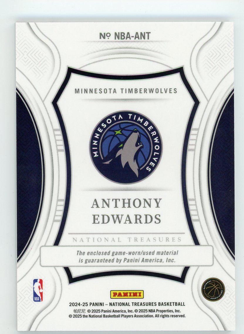 2024-25 Panini National Treasures Basketball Anthony Edwards NBA Materials Jersey #'ed 54/99