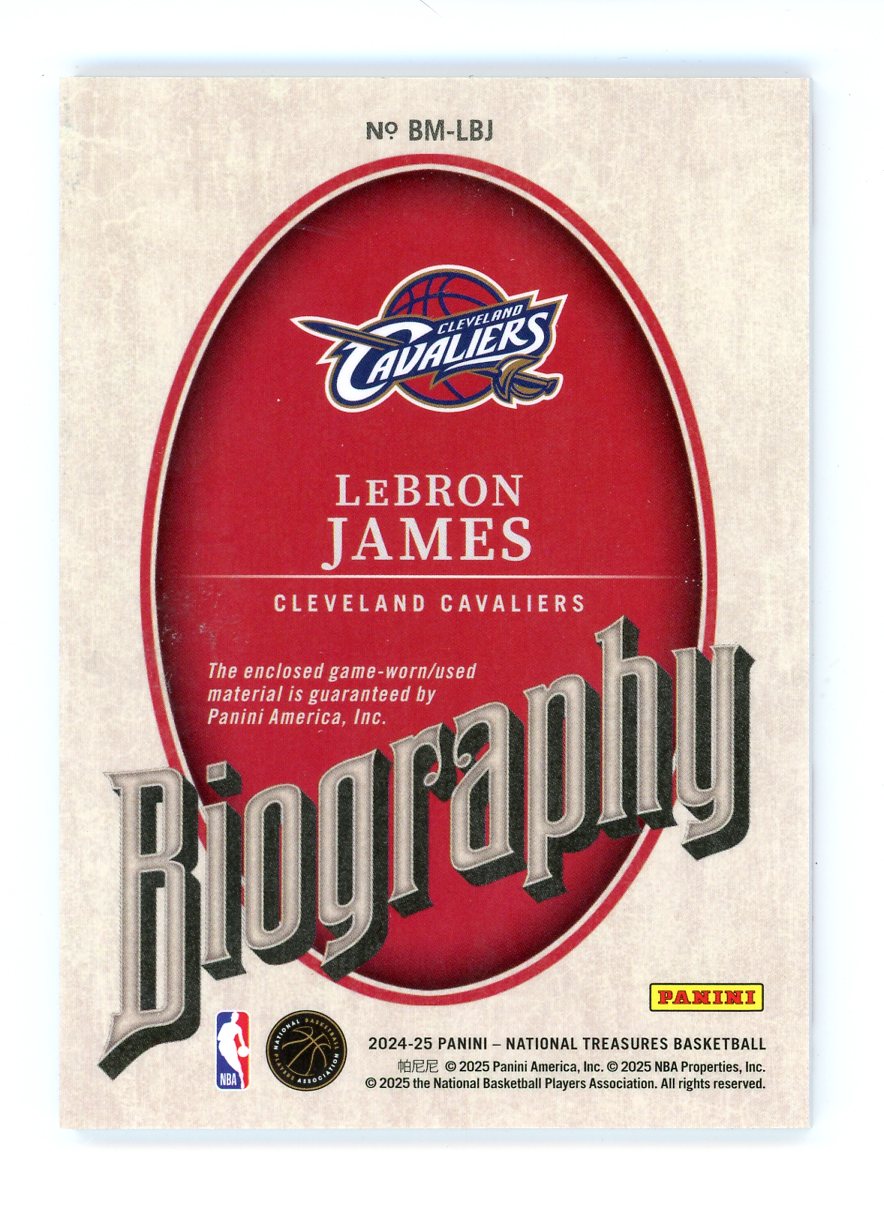 2024-25 Panini National Treasures Basketball Lebron James Biography Materials Jersey #'ed 49/99