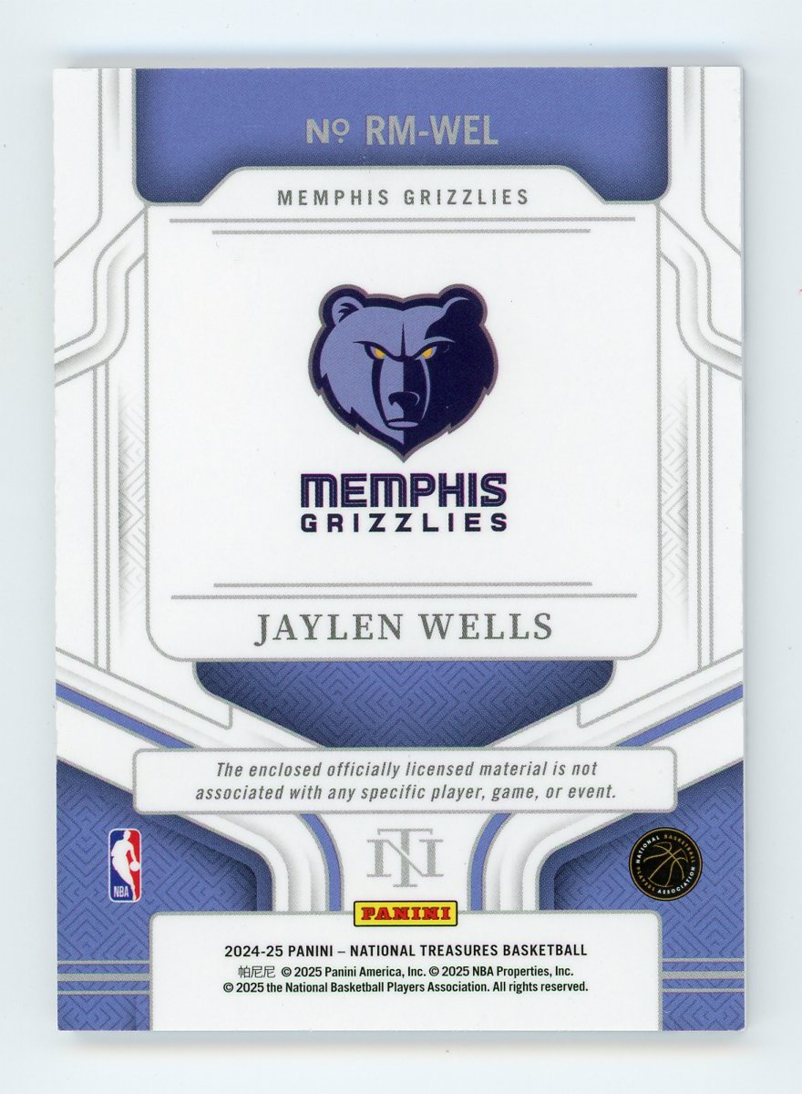 2024-25 Panini National Treasures Basketball Jaylen Wells Rookie Materials Prime Patch RC #'ed 15/25