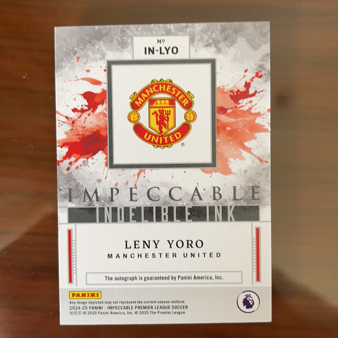 2024-25 Panini Impeccable Leny Yoro 小真金 英超 曼联 莱尼 约罗 93/ 99编 签名 签字 Ink签 专收必备 卡如图 值得收藏