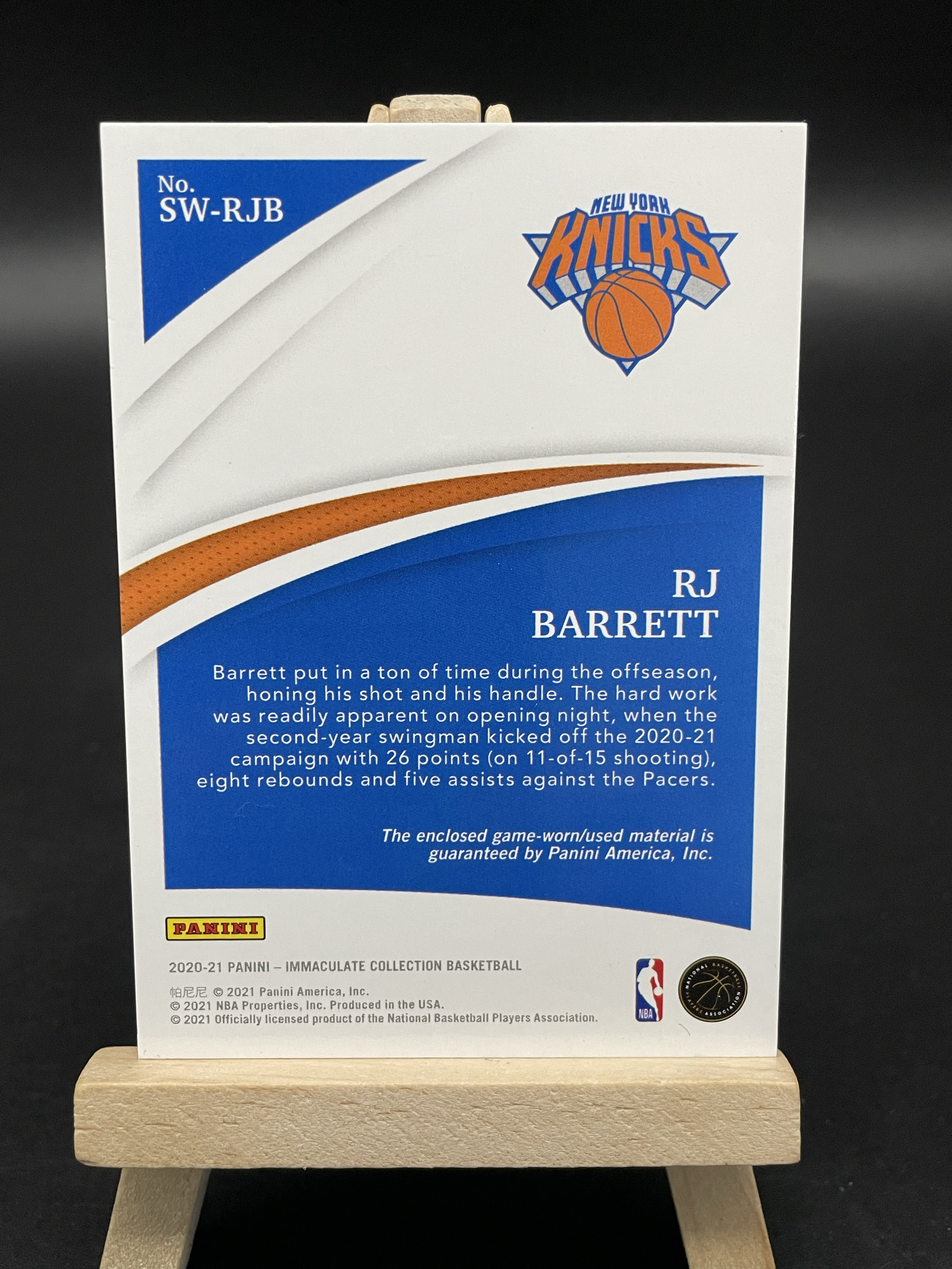 2020-21 Panini Immaculate R.J. Barrett 【白鸟代卖】IMM 耐克钩子 TAG 湖水蓝 RJB RJ巴雷特 1/1编 ofo Gu patch球衣 微瑕如图 雨花石