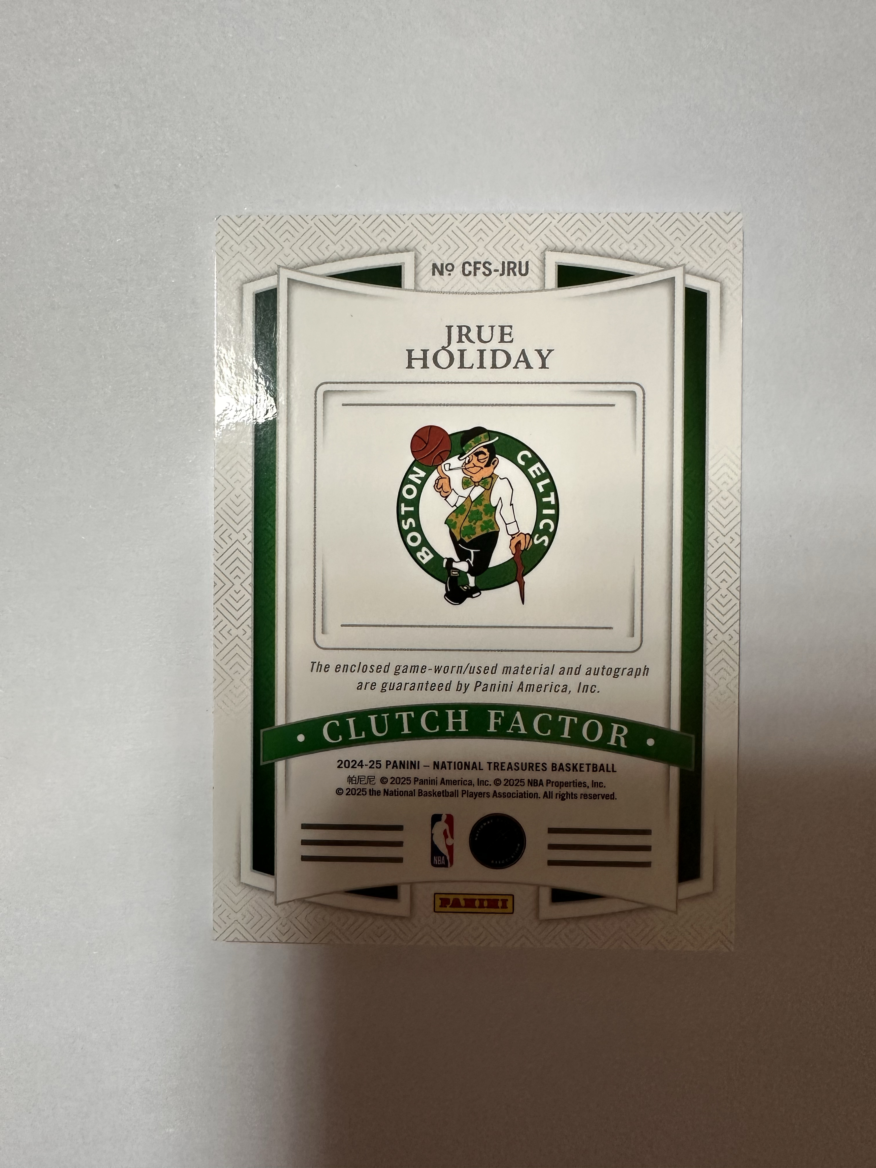 2024-25 Panini National Treasures Jrue Holiday 国宝 凯尔特人 朱 霍勒迪 卡签 物料切割 亲穿 19/35编 总冠军功臣 卡品如图 收藏必备