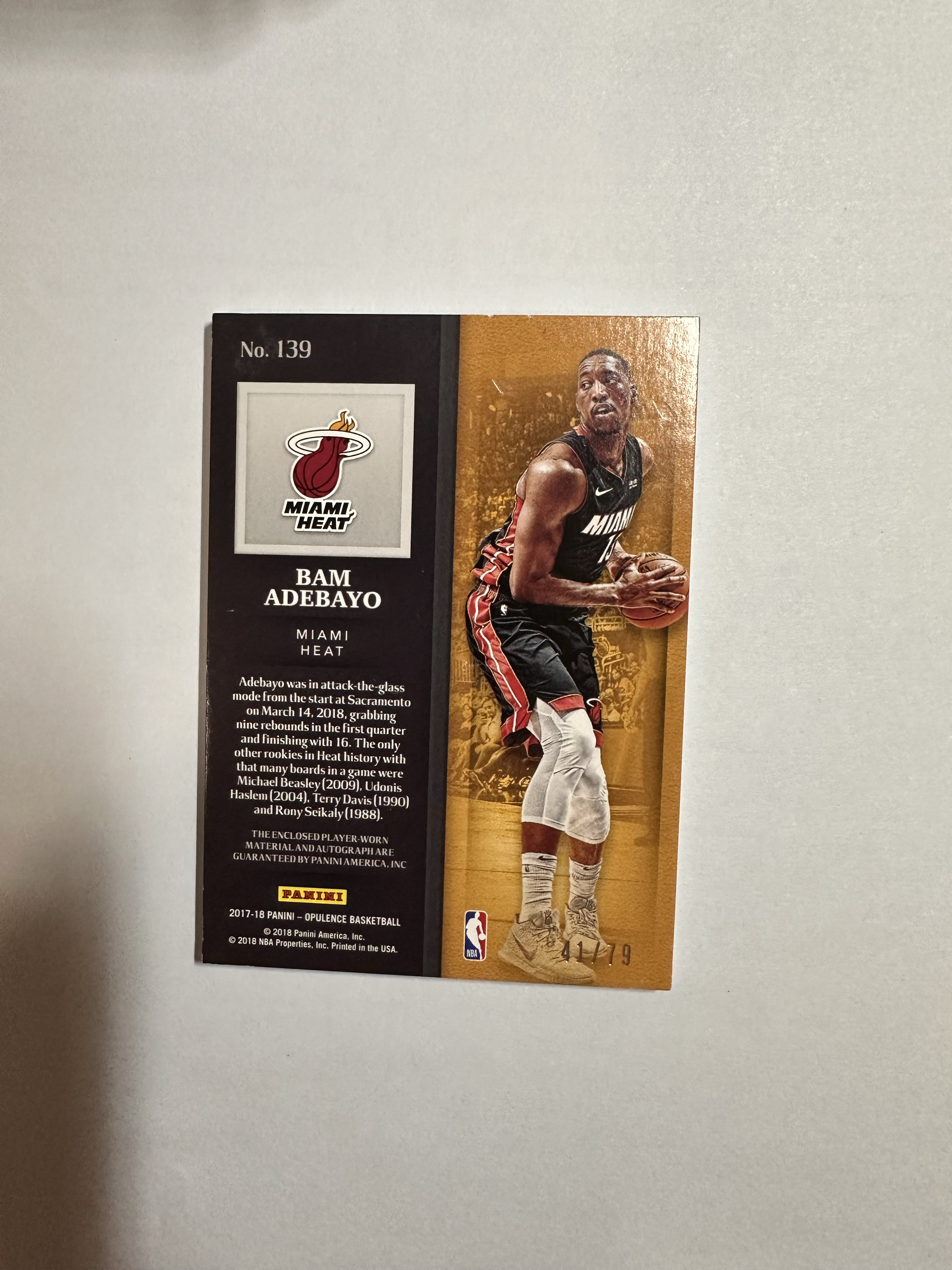 2017-18 Panini Opulence Bam Adebayo RC 热火核心 新秀 rc 老大 阿德巴约 签字 卡签 41/79编 rpa 球衣切割 韦德小弟 希罗搭档 收藏升值必备