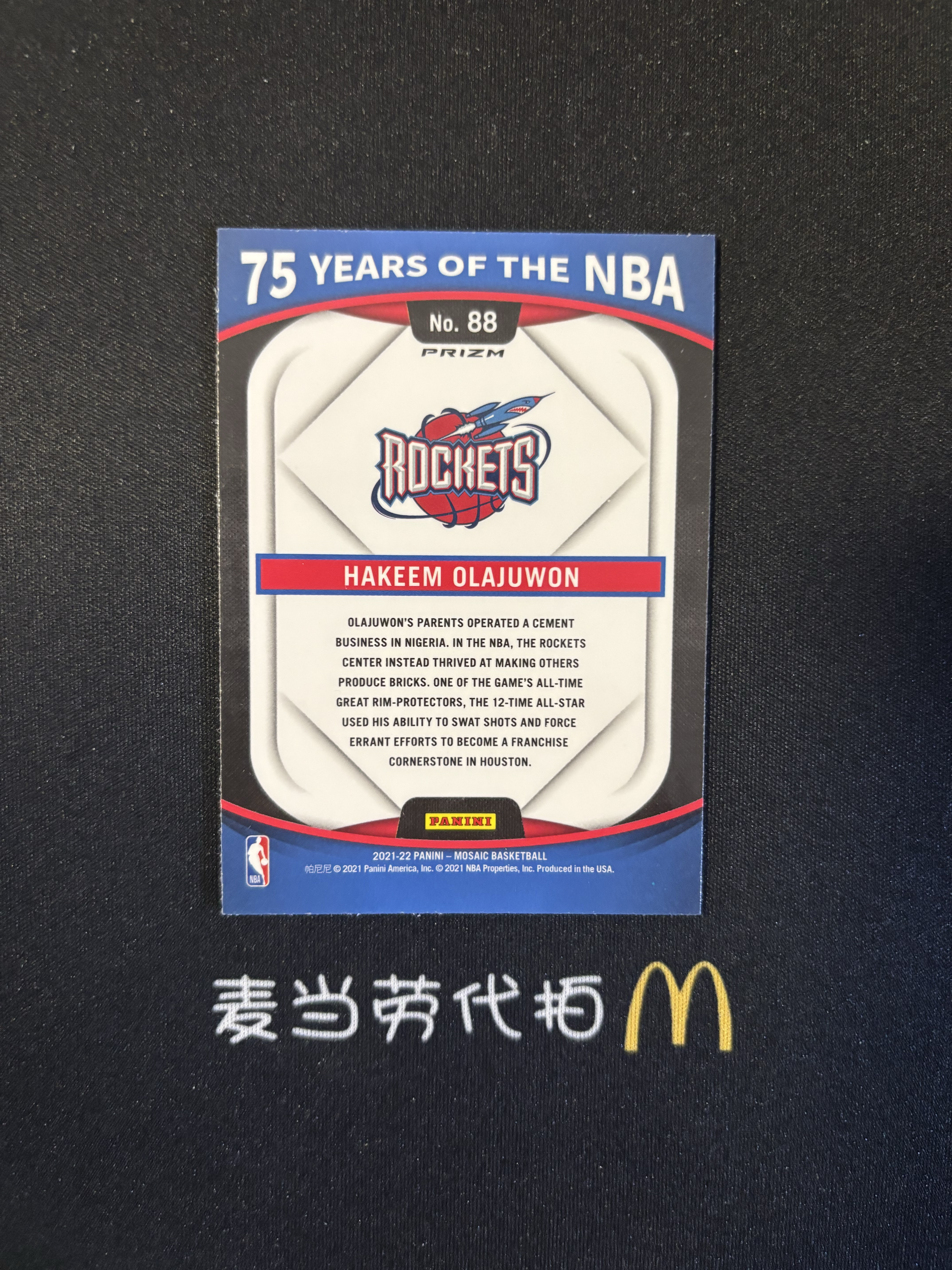 2021-22 Panini Mosaic Hakeem Olajuwon 21-22 马赛克 火箭队 大梦 奥拉朱旺 75周年 特卡 折射 收藏凑套绝美