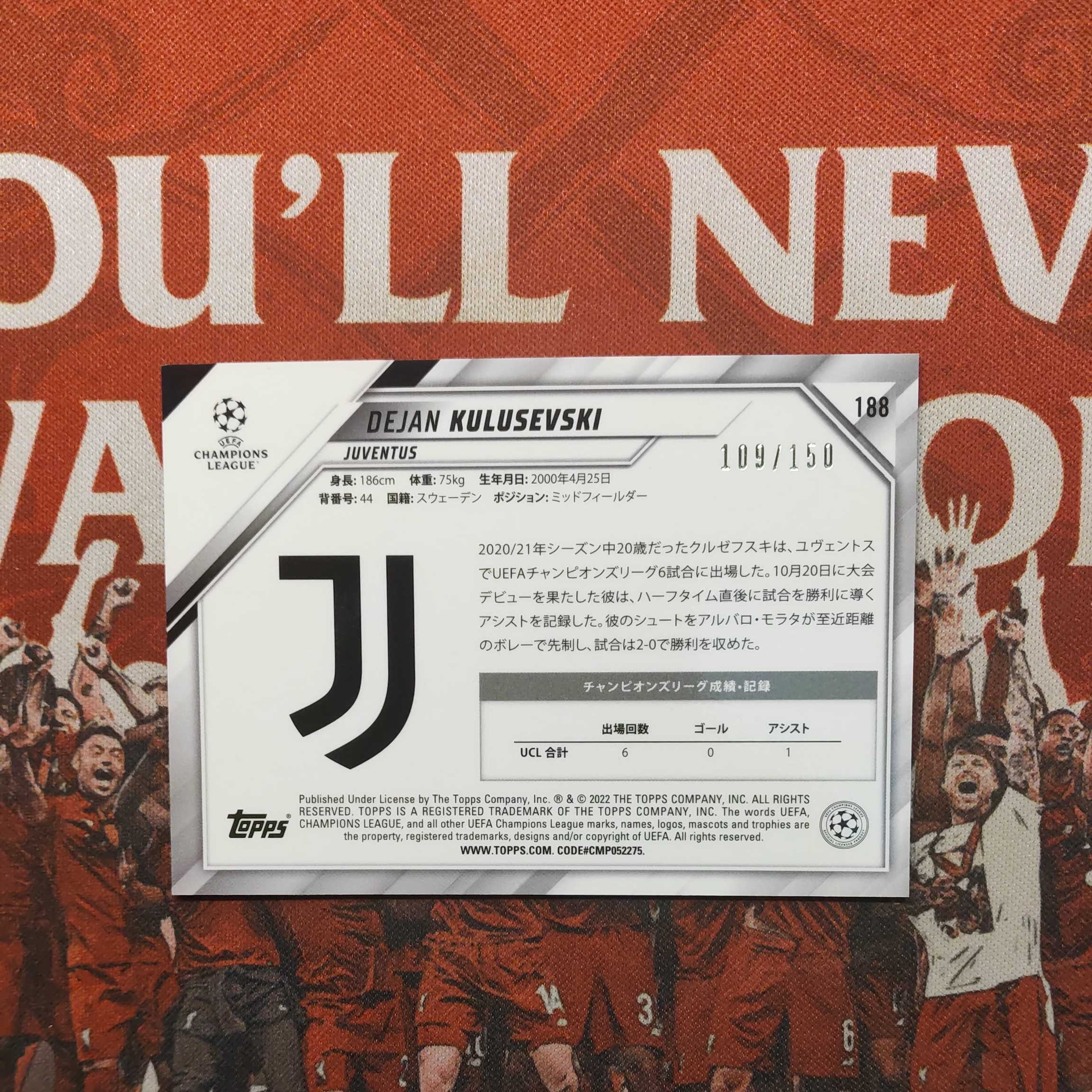 2021-22 Topps UEFA Champions League Dejan Kulusevski 利记小铺 欧冠樱花 尤文图斯 库卢塞夫斯基 金mojo折150编 109/150 卡品如图 鸭哥