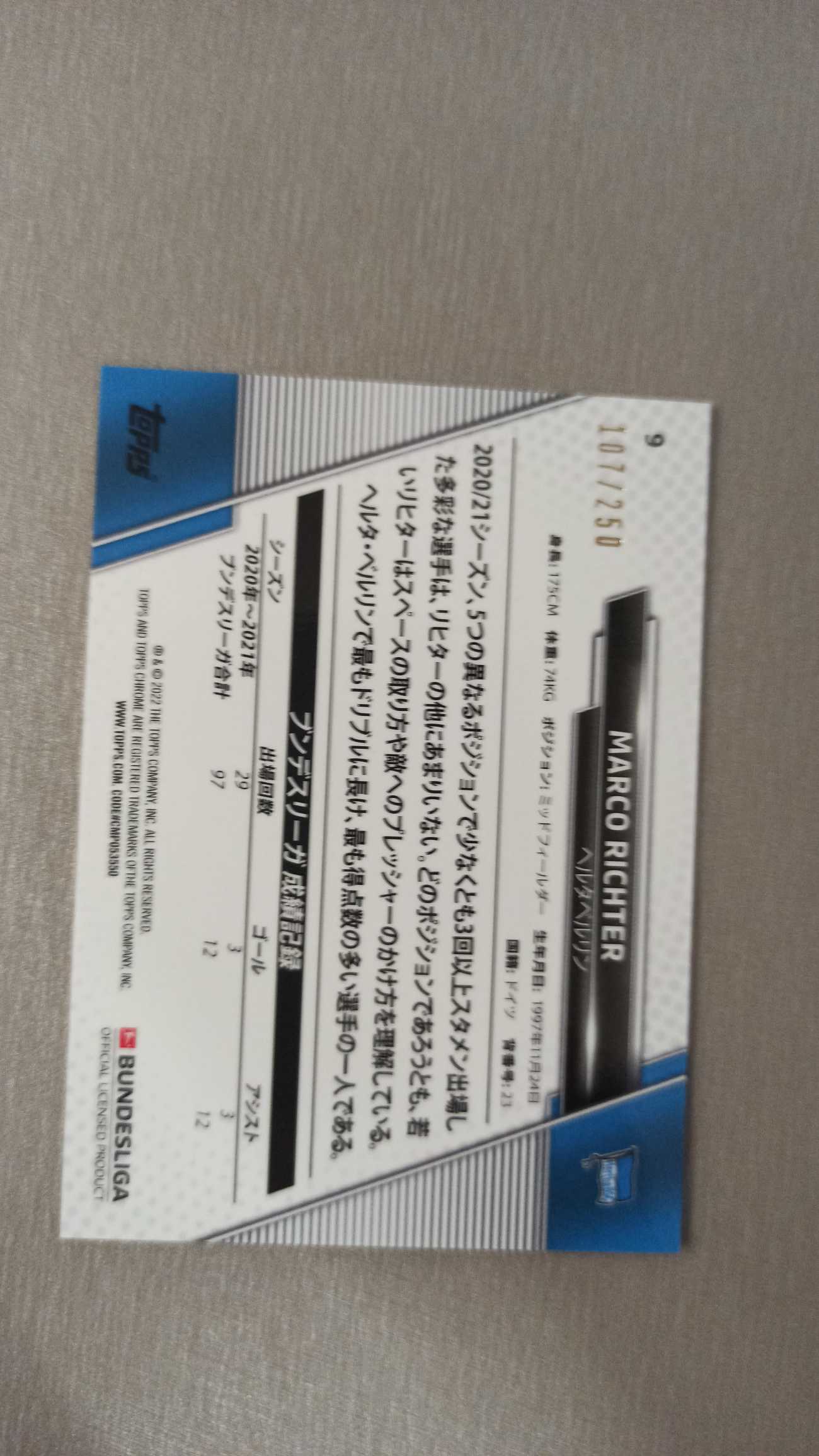 2022 Topps Chrome Bundesliga Japan Marco Richter 107/250编 里克特 卡品如图 收藏必备 卡默认都有瑕疵白边 介意勿拍