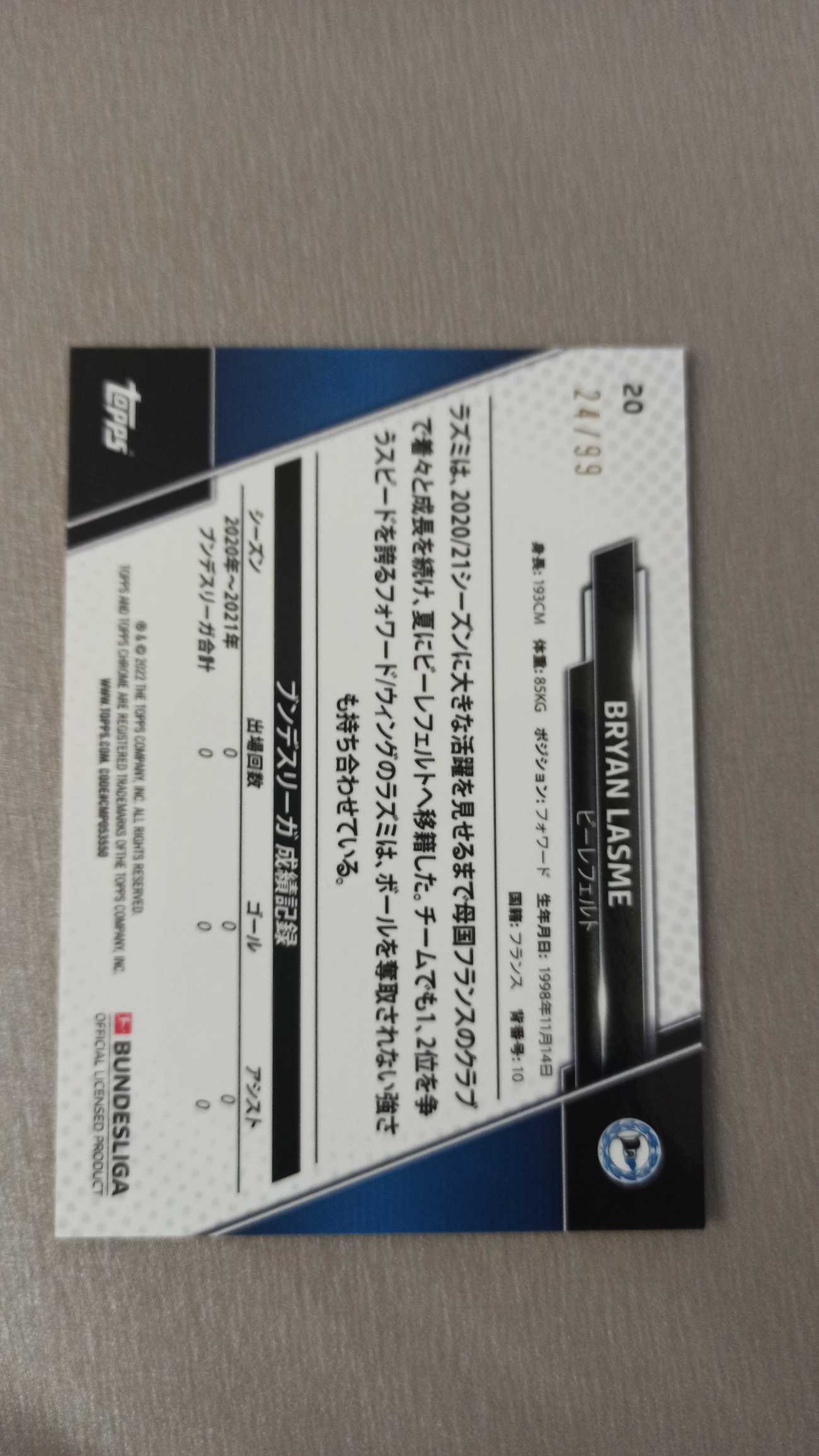 2022 Topps Chrome Bundesliga Japan Bryan Lasme RC 24/99编 拉斯梅 卡品如图 收藏必备 卡默认都有瑕疵白边 介意勿拍