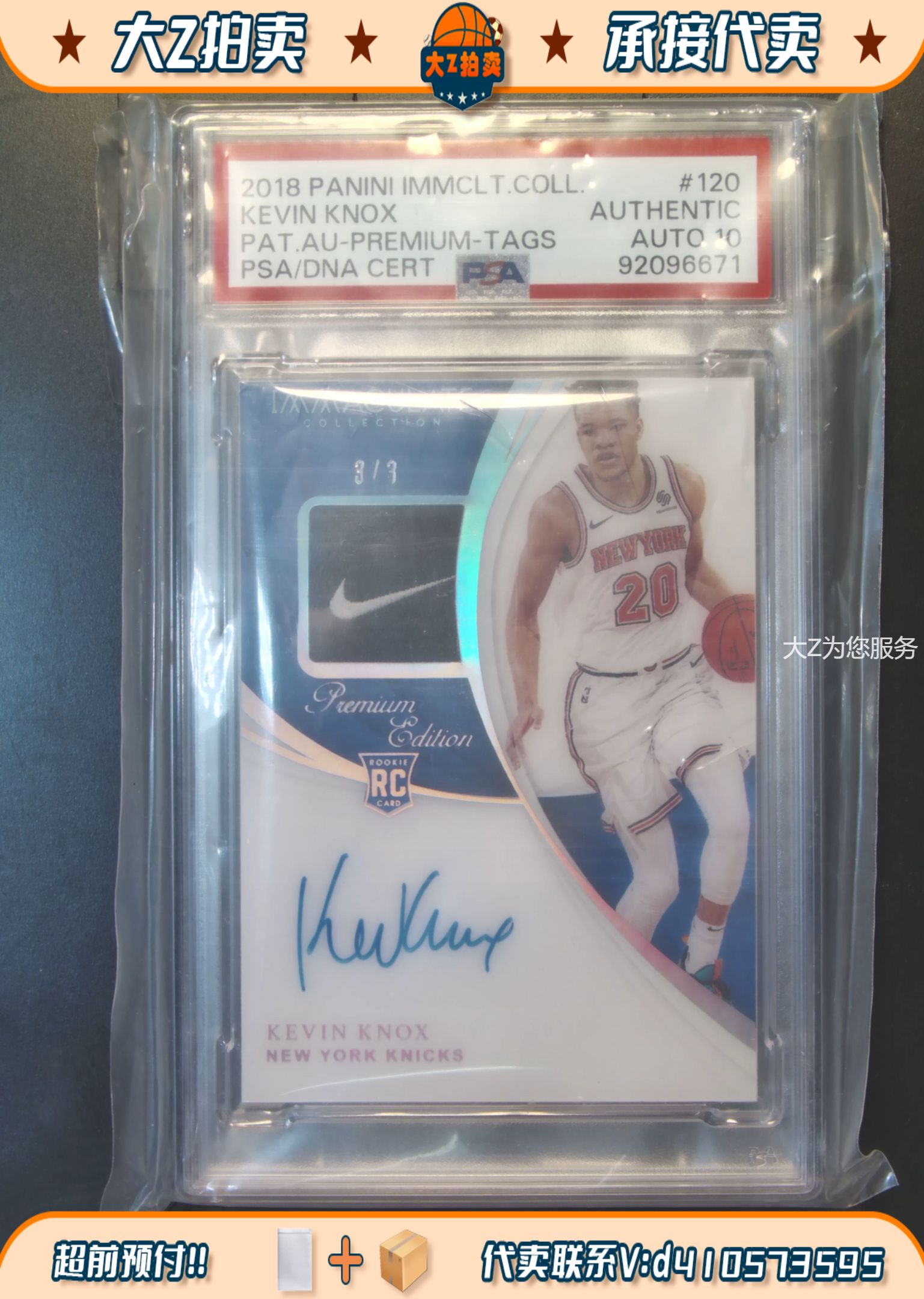 ZG60 2018-19 Panini Immaculate Kevin Knox 新秀RC 凯文 诺克斯 尼克斯 镜面 RPA TAG 切耐克钩子 卡签签字 2/3编 PSA评级 完美墨迹10分