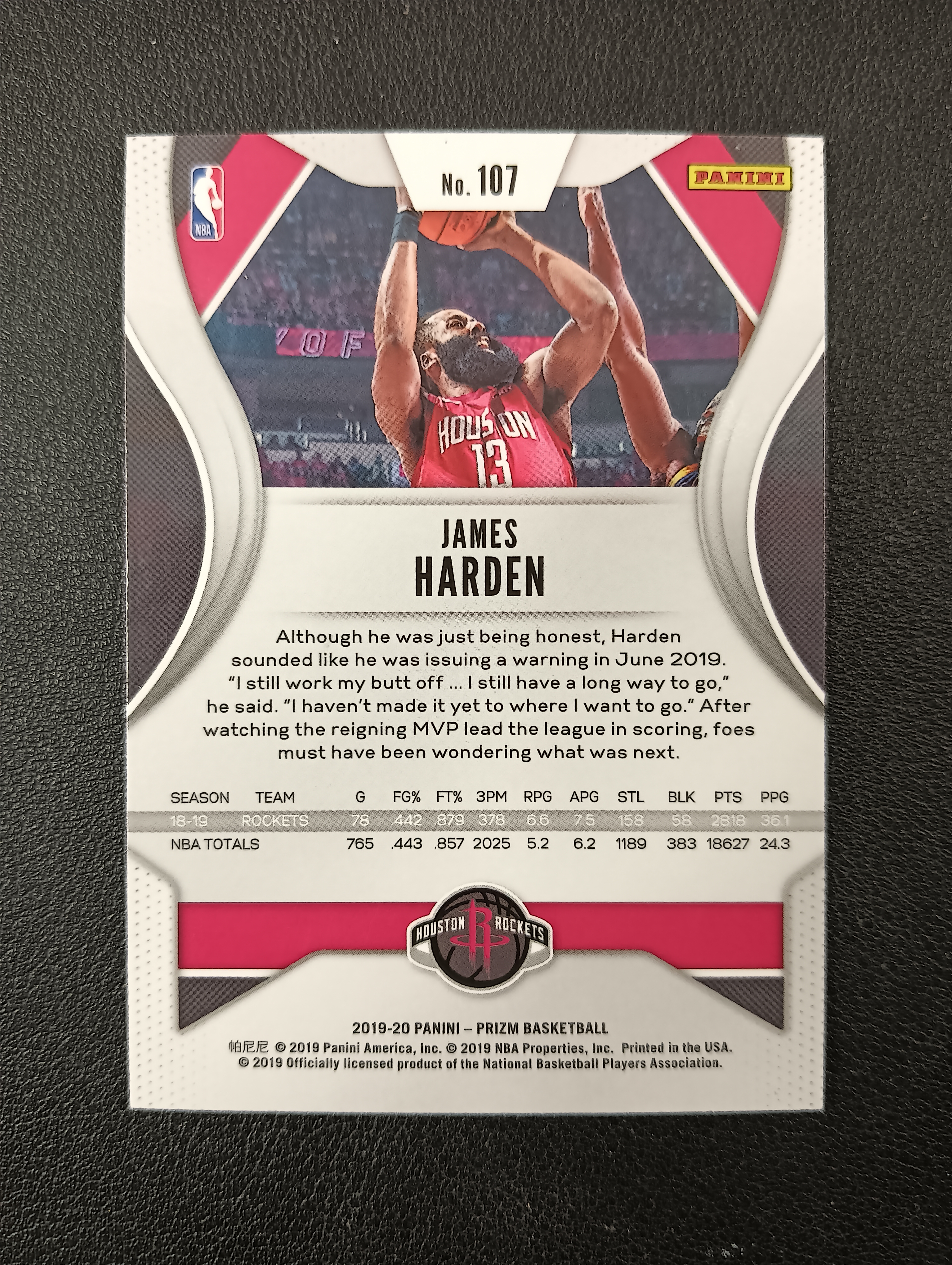 2019-20 PANINI PRIZM JAMES HARDEN 【卡仓-晋语073】火箭 詹姆斯哈登 BASE NO.107