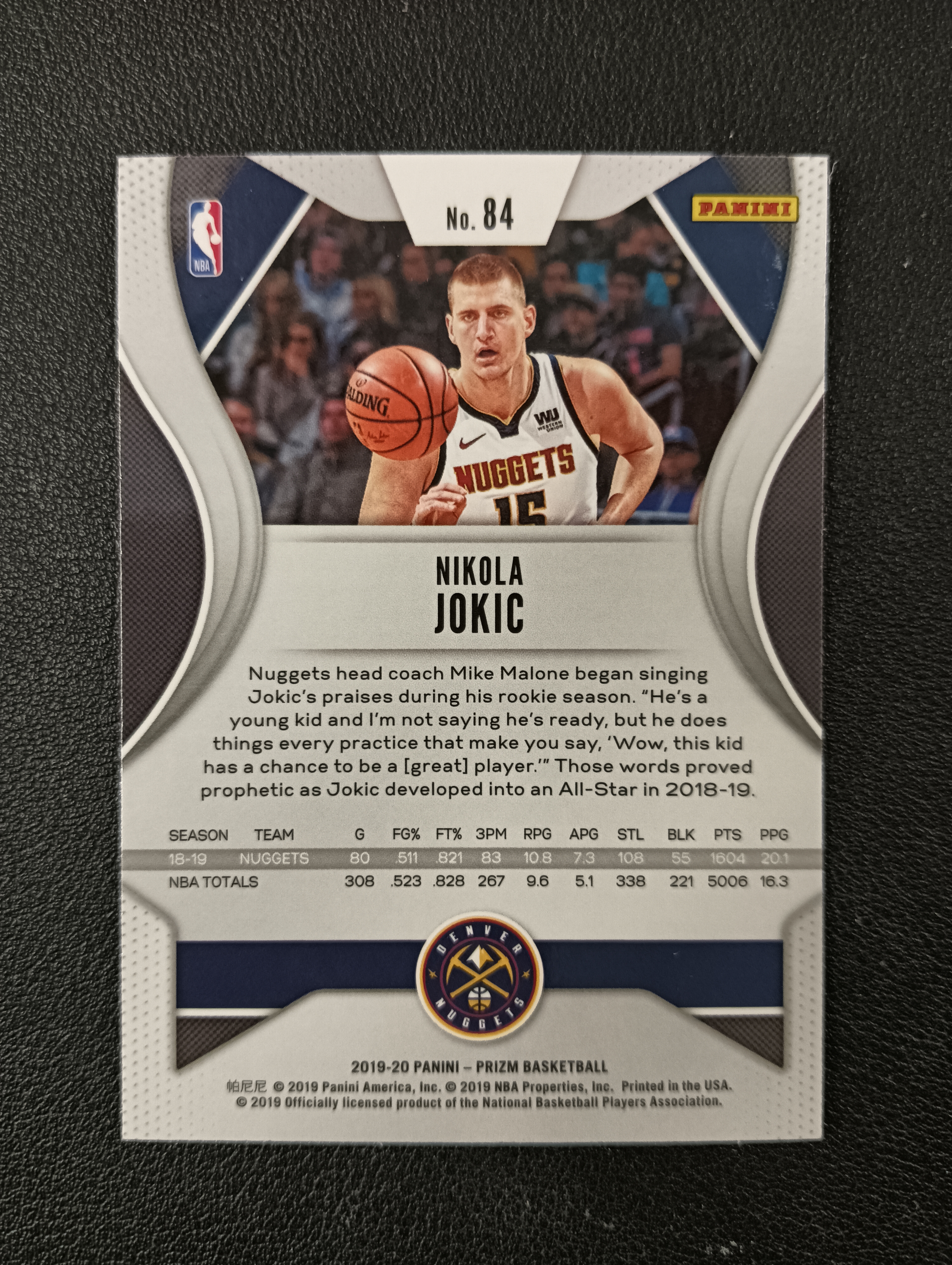 2019-20 PANINI PRIZM NIKOLA JOKIC 【卡仓-晋语073】掘金 尼古拉约基奇 约老师 BASE NO.84
