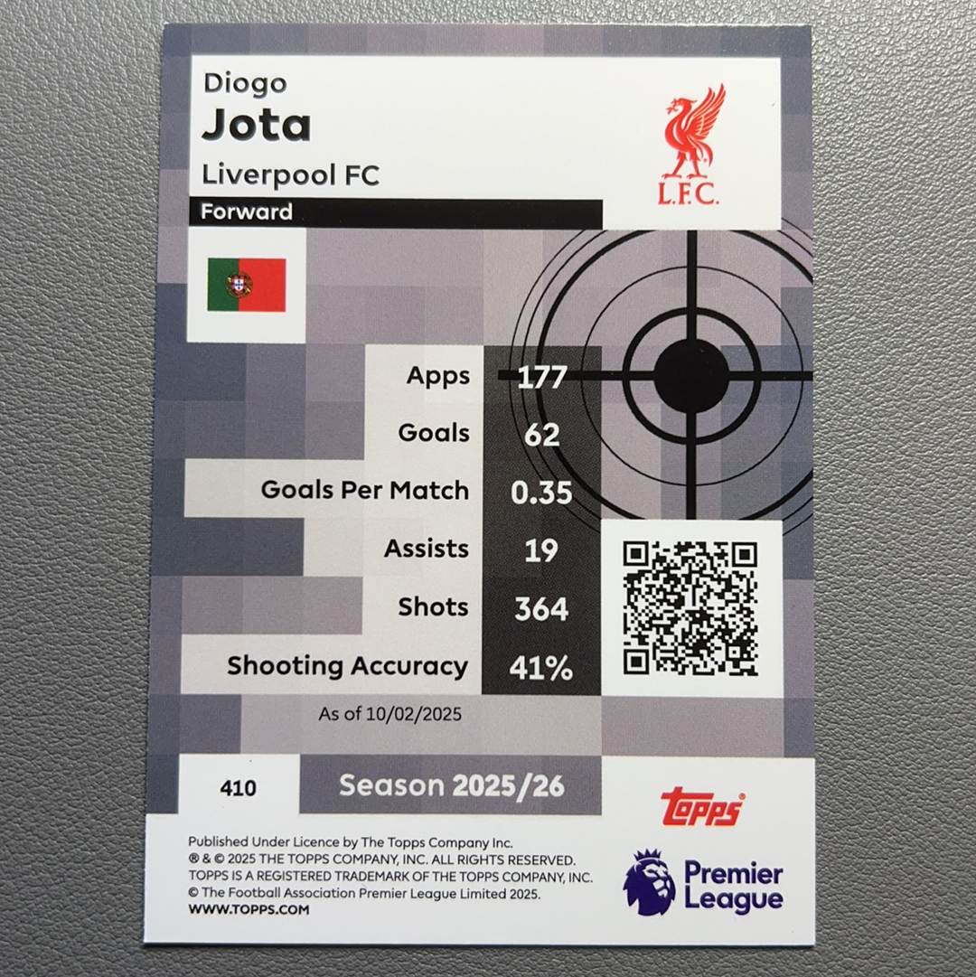 2025-26 Topps Premier 英超 Diogo Jota 迪奥戈 若塔 利物浦 英超 精准大师特卡 卡品如图 收藏必备