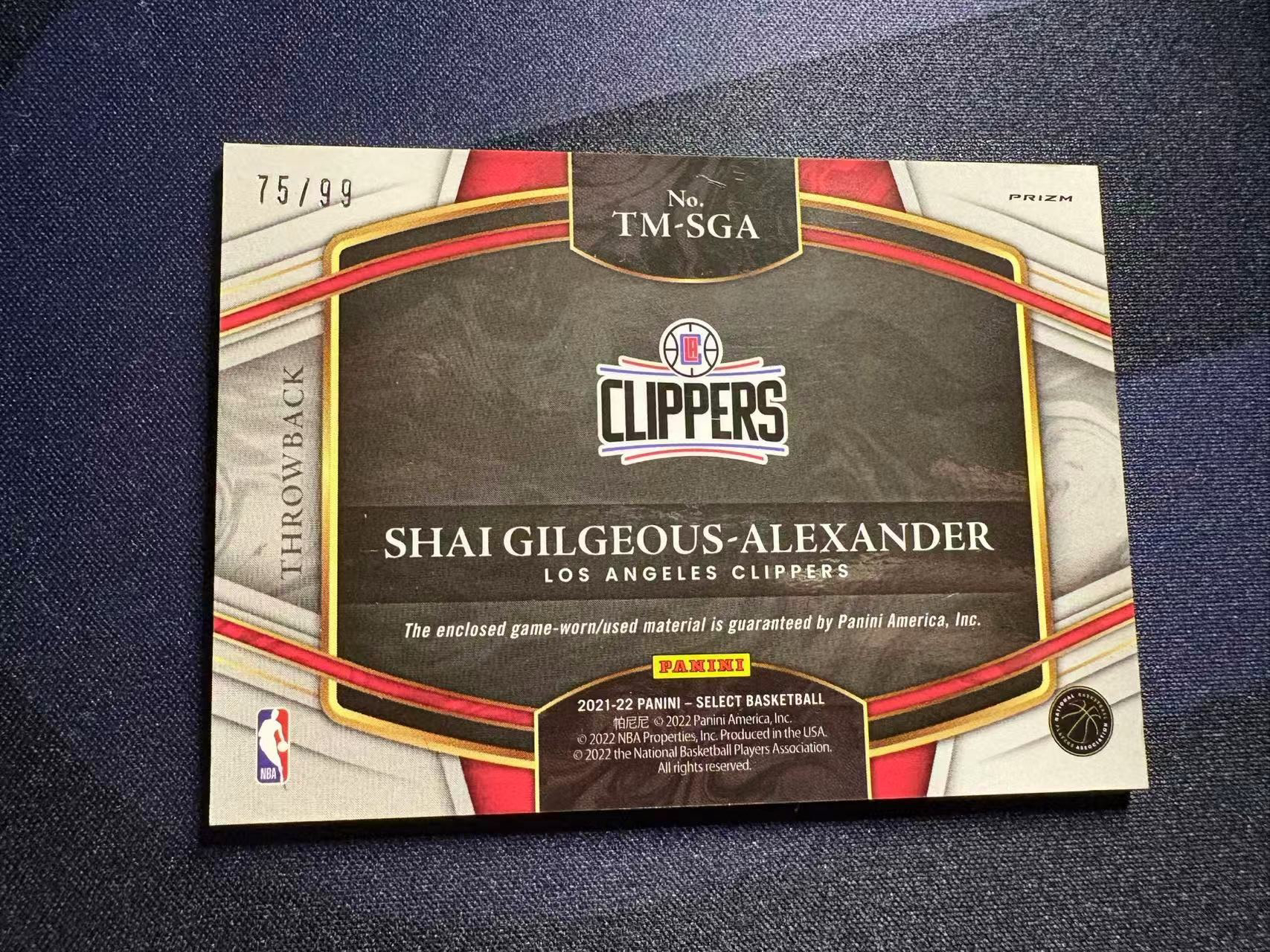 2021-22 Panini Select Shai Gilgeous-Alexander 【24s拍卖】亚历山大 球衣 物料 快船 新秀 rc 99编 大窗 极其稀有 mvp 得分王 下赛季起飞