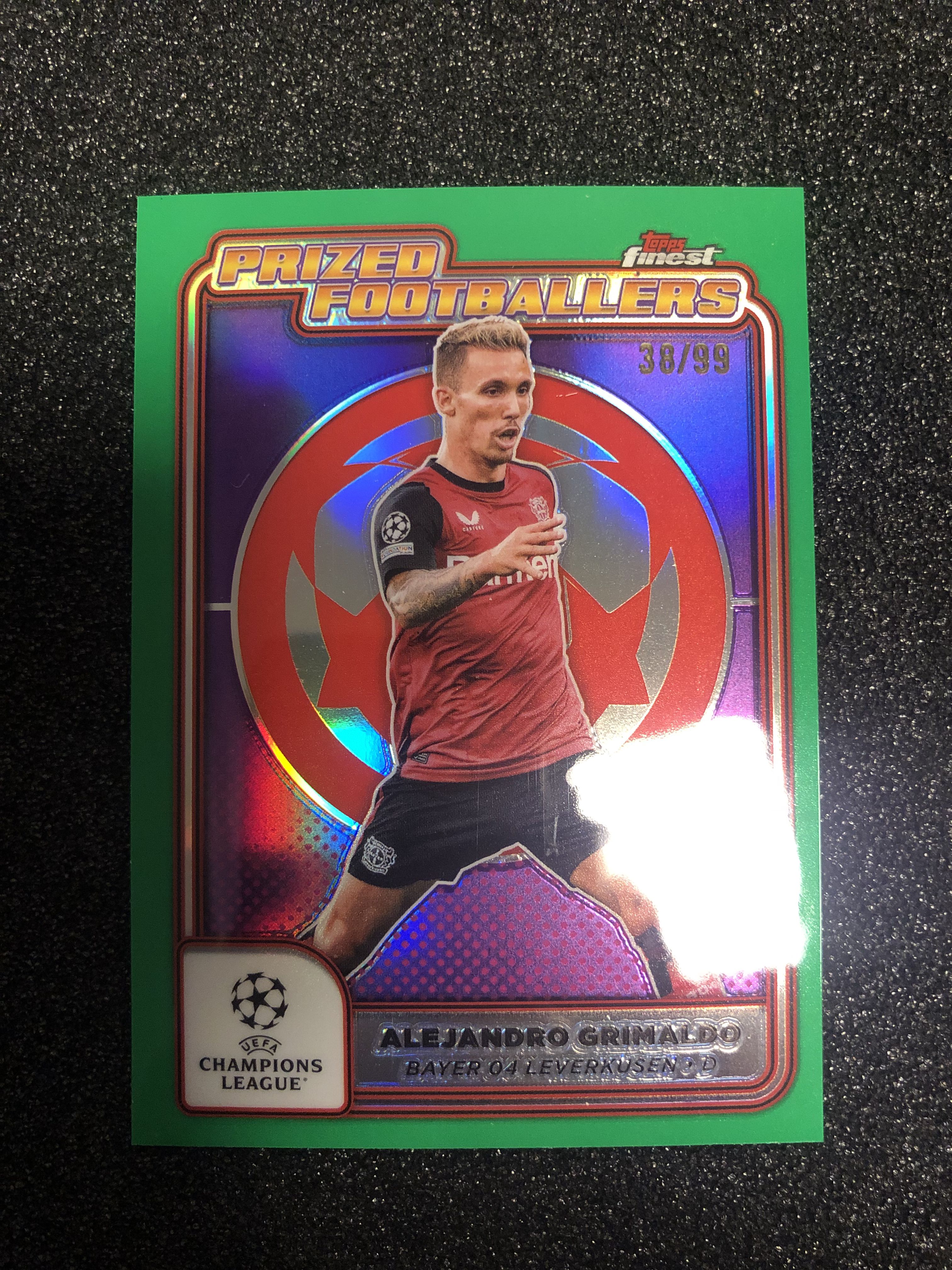 2024-25 Topps Finest Alejandro Grimaldo 欧战finest 典范球员特卡 格里马尔多 西班牙 勒沃库森 99编 绿折 38/99 卡品如图 凑套收藏必备