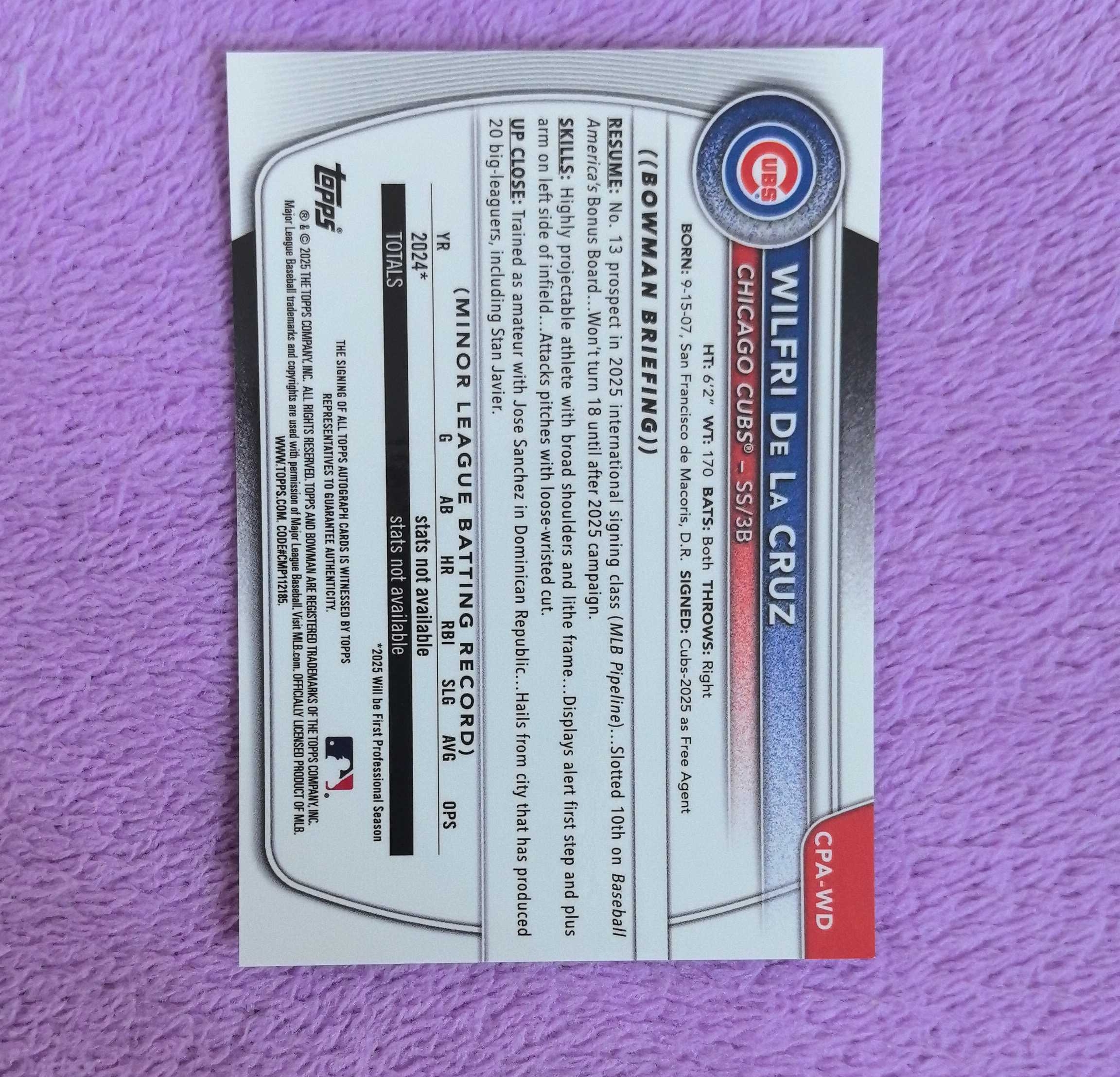 2025 Topps 【锡安代卖】 累计照常 棒球mlb bowman 1st新秀签字卡签 芝加哥小熊热门新秀大物 Wilfri de la cruz 卡品如图 三角肉