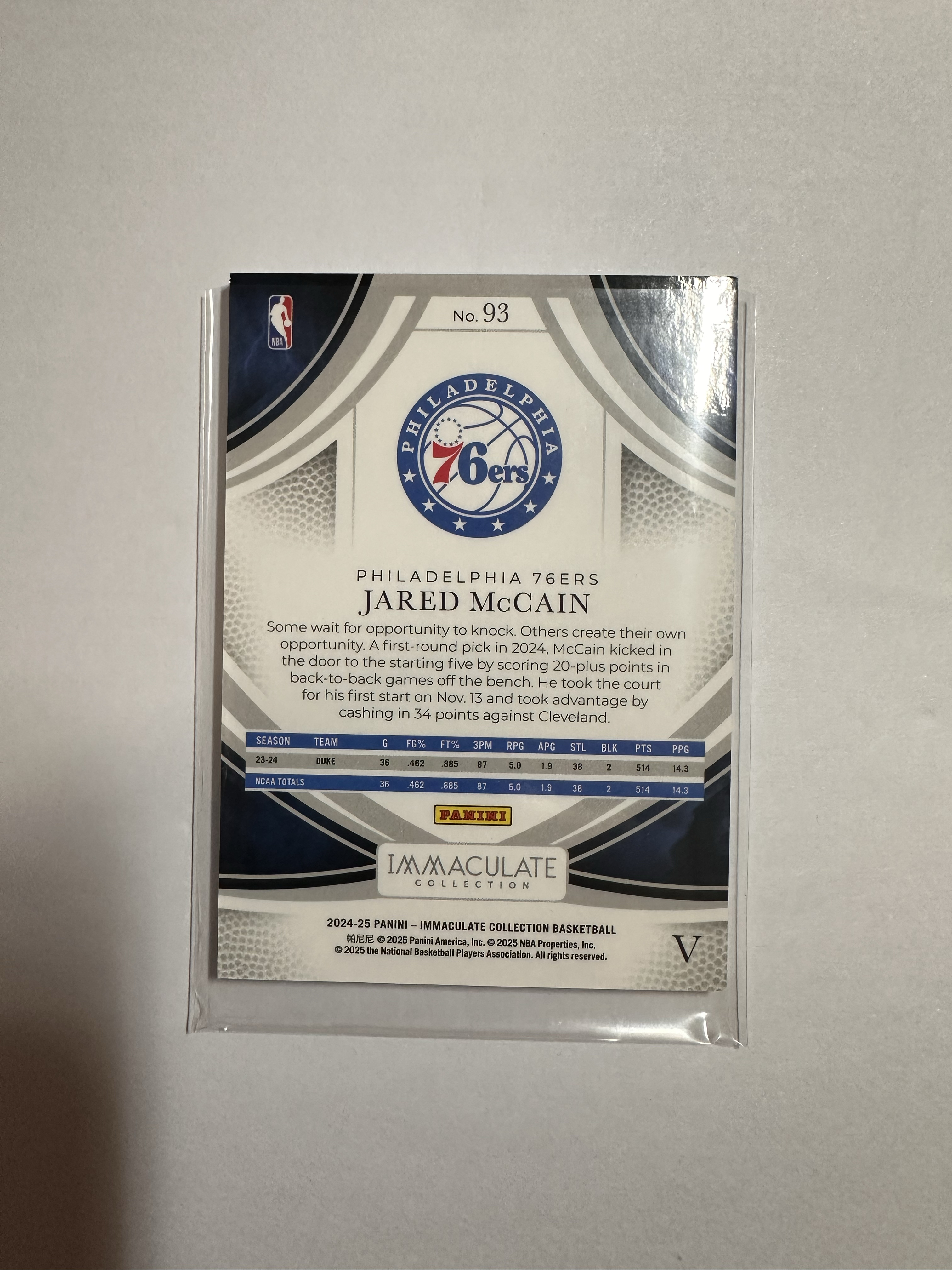 2024-25 Panini Immaculate Jared McCain RC 76人新秀 rc 麦凯恩 魔仙哥 21/99编 横版变化版 base 未来可期 收藏升值必备