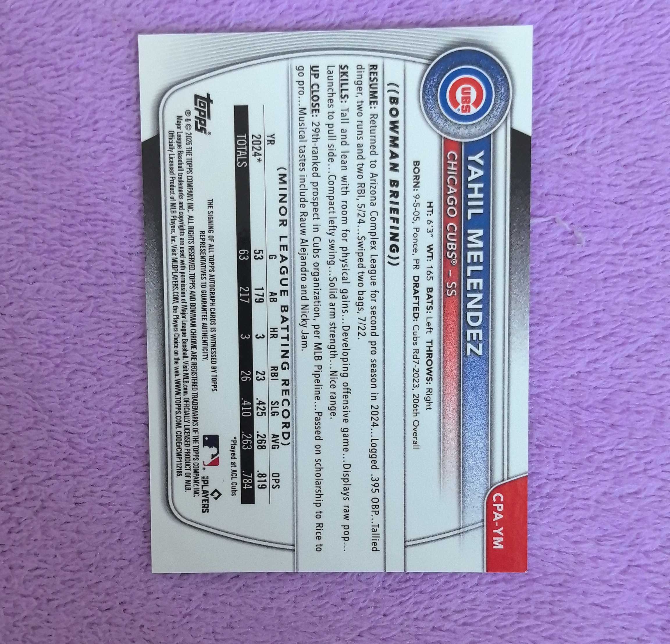 2025 Topps 【锡安代卖】 累计照常 棒球mlb bowman 1st新秀签字卡签 芝加哥小熊热门新秀大物 Yahil Melendez 卡品如图 三角肉