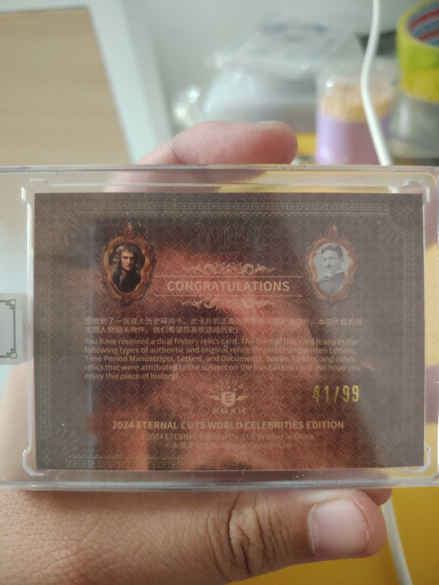 2024 永痕文化 永痕 世界名人 牛顿 永痕文化世界名人牛顿,尼古拉特斯拉双人手迹切割41/99编,原封砖